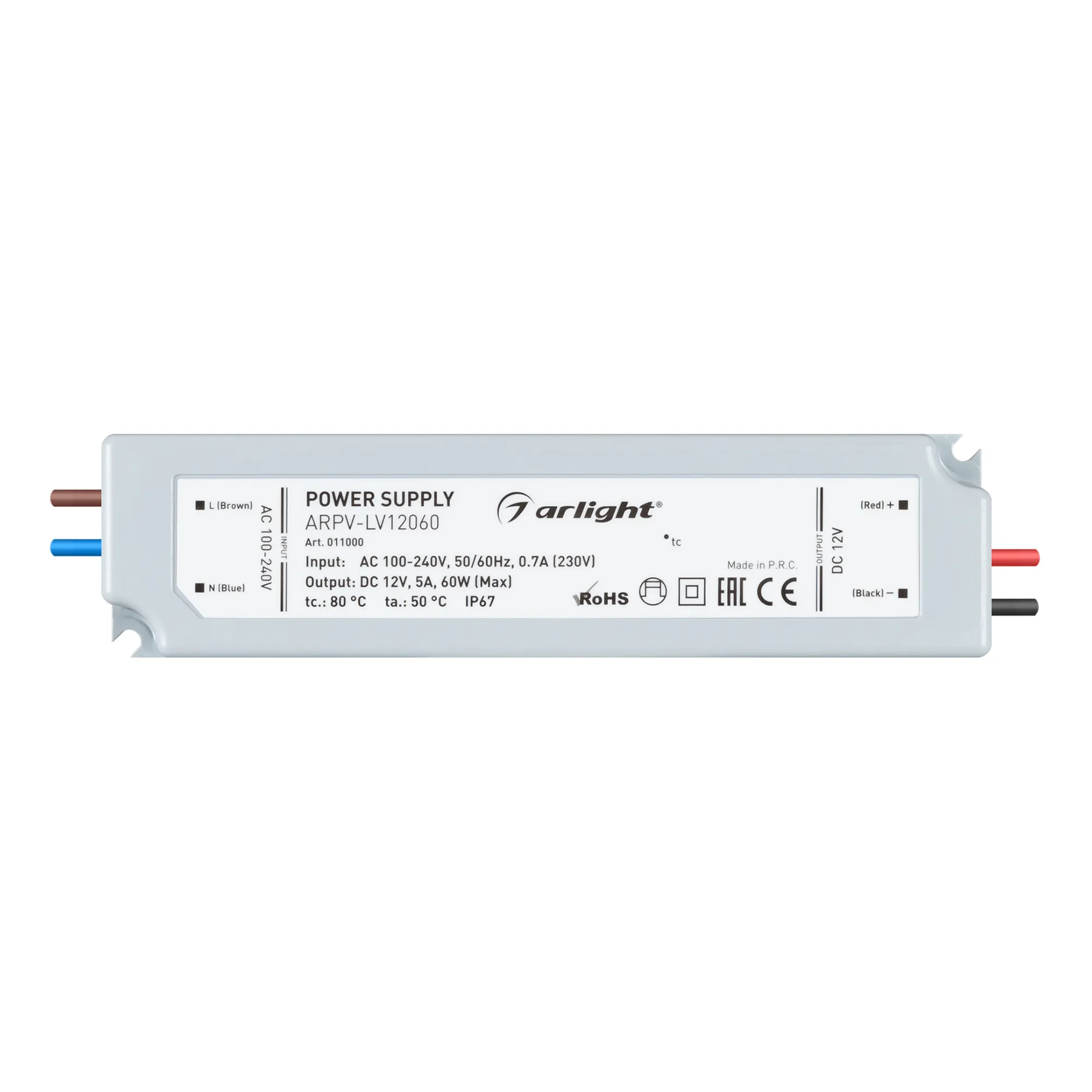 Блок питания ARPV-LV12060 (12V, 5.0A, 60W) (Arlight, IP67 Пластик, 2 года)