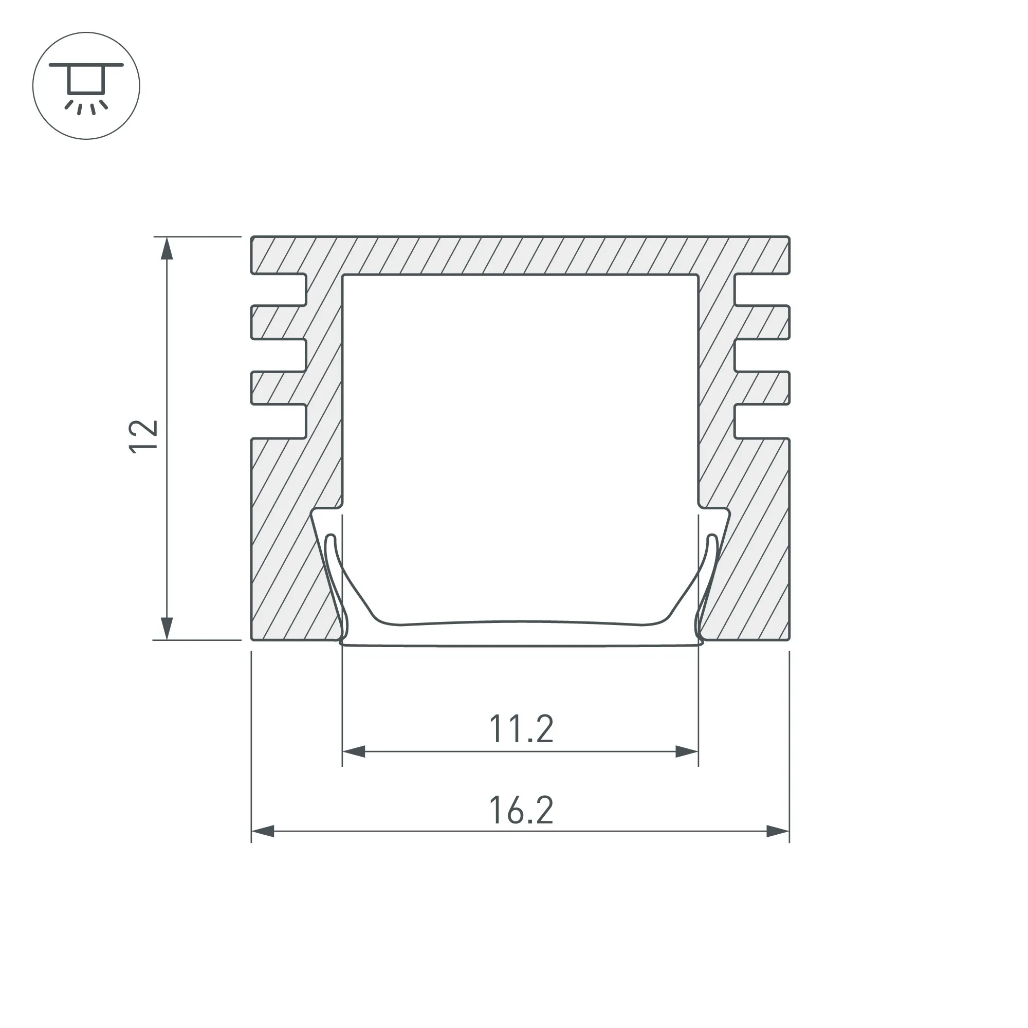 Алюминиевый анодированный профиль для светодиодных лент и линеек. Габаритные размеры (L×W×H): 2000x16x12 мм. Ширина площадки для ленты 11,2 мм. Экраны, заглушки и другие аксессуары приобретаются отдельно. Цена за 1 метр.