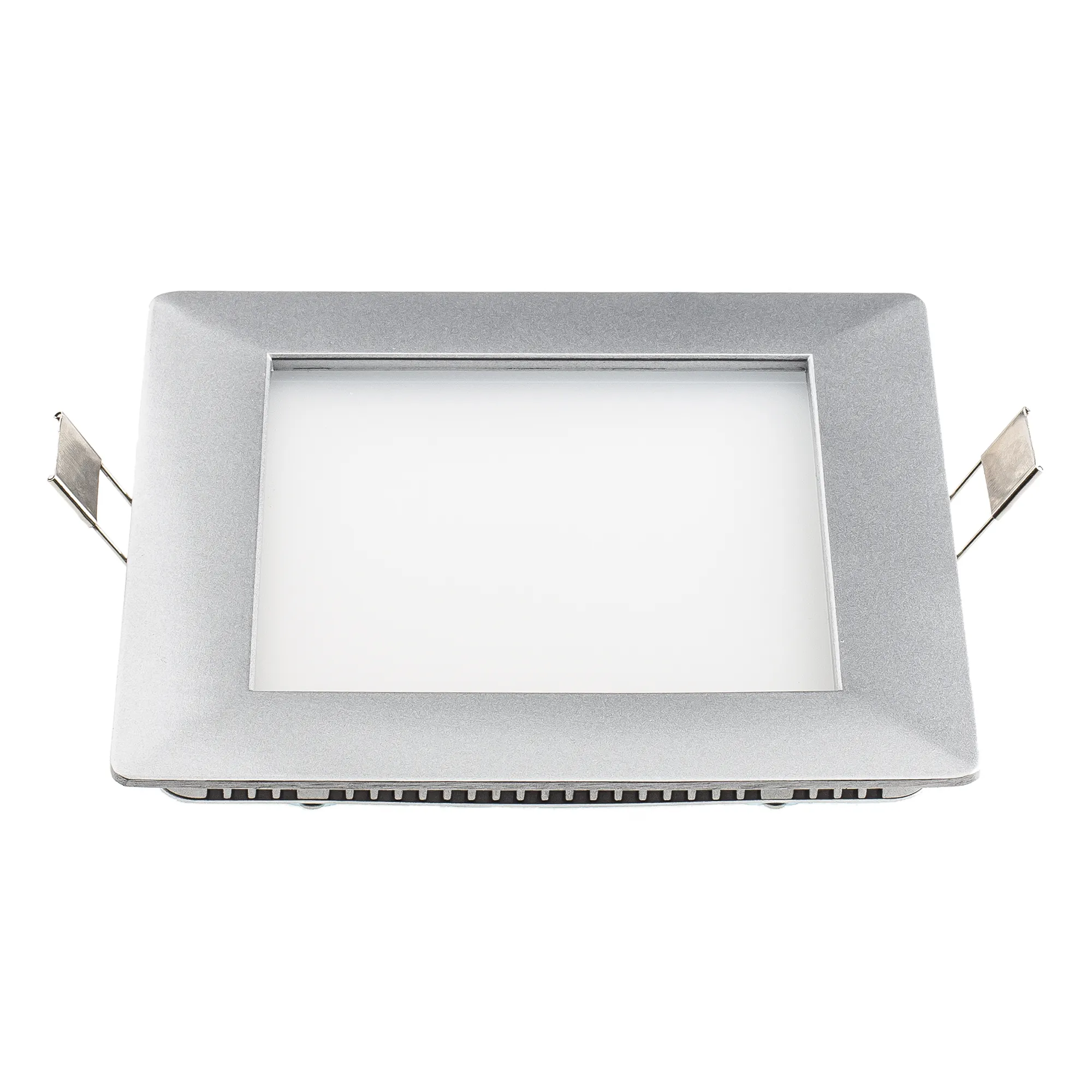 Тонкая квадратная панель с эксклюзивным дизайном рамки. Цвет корпуса - серебро. Мощность 12Вт. Цвет свечения ТЕПЛЫЙ БЕЛЫЙ 3000K. Световой поток 840-960 лм. Угол 120°. Размер 160х160x14 мм, установка в отверстие 150х150 мм. Питание от сети 220VAC, драйвер в комплекте (DC520mA, 18-22V).