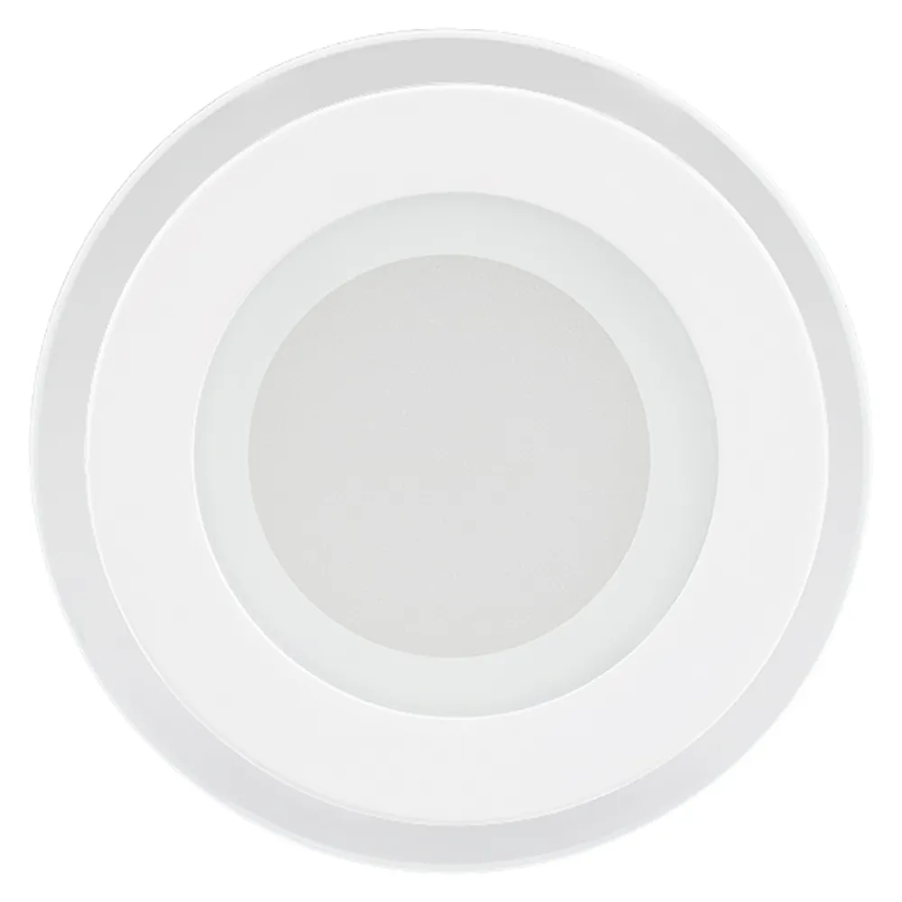 Стеклянная круглая панель 6Вт / ТЕПЛЫЙ 3000K / 430лм / 120°. Размер Ф96x45мм (в отверстие Ф72 мм). Корпус белый. Питание от сети 230VAC, мощность 6Вт. Драйвер в комлекте: 300mA, 15-25V. Диапазон рабочих температур -10°..+40°C. Для помещений.