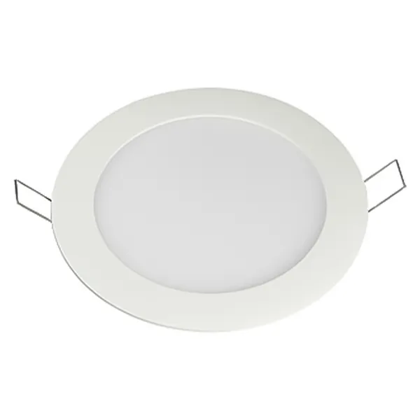 Тонкая панель 15Вт / ТЁПЛЫЙ 2700K / 900-1000лм / 120°. Размер Ф180 x 13мм (в отверстие 165мм). Корпус круглый плоский, белый. Питание от сети 220VAC, драйвер в комплекте (300mA, 30-60V).