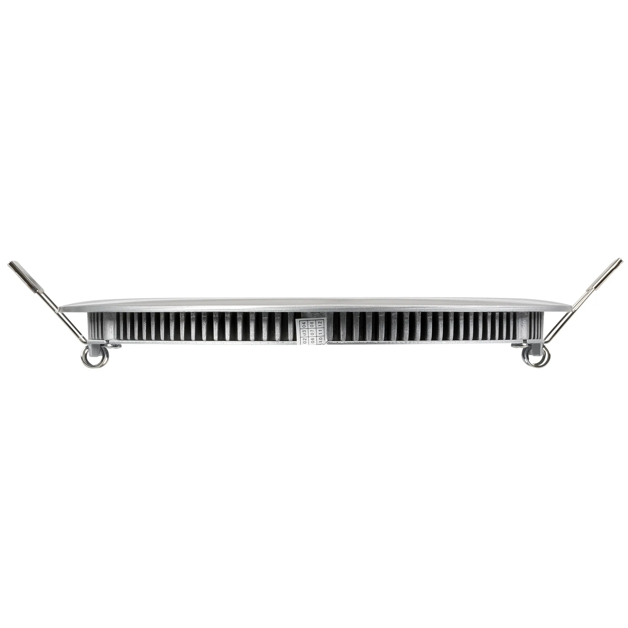 Тонкая круглая панель с эксклюзивным дизайном рамки. Цвет корпуса - серебро. Мощность 10Вт. Цвет свечения ТЕПЛЫЙ БЕЛЫЙ 3000K. Световой поток 670-880 лм. Угол 120°. Размер Ф179 x 16 мм, установка в отверстие 170 мм. Питание от сети 220VAC, драйвер в комплекте (DC490mA, 18-22V).
