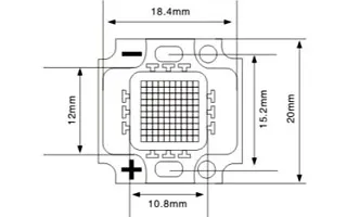 Мощный светодиод типа COB, размер 18.4×20 мм. Чипы USA Bridgelux 23x45mil. Цвет свечения белый (6000-6500 К). Угол излучения 120°. Световой поток 800-900 лм при If=700 мА, P=8 Вт. VF=12-13.6 В. CRI>70. Для использования с солнечными батареями.