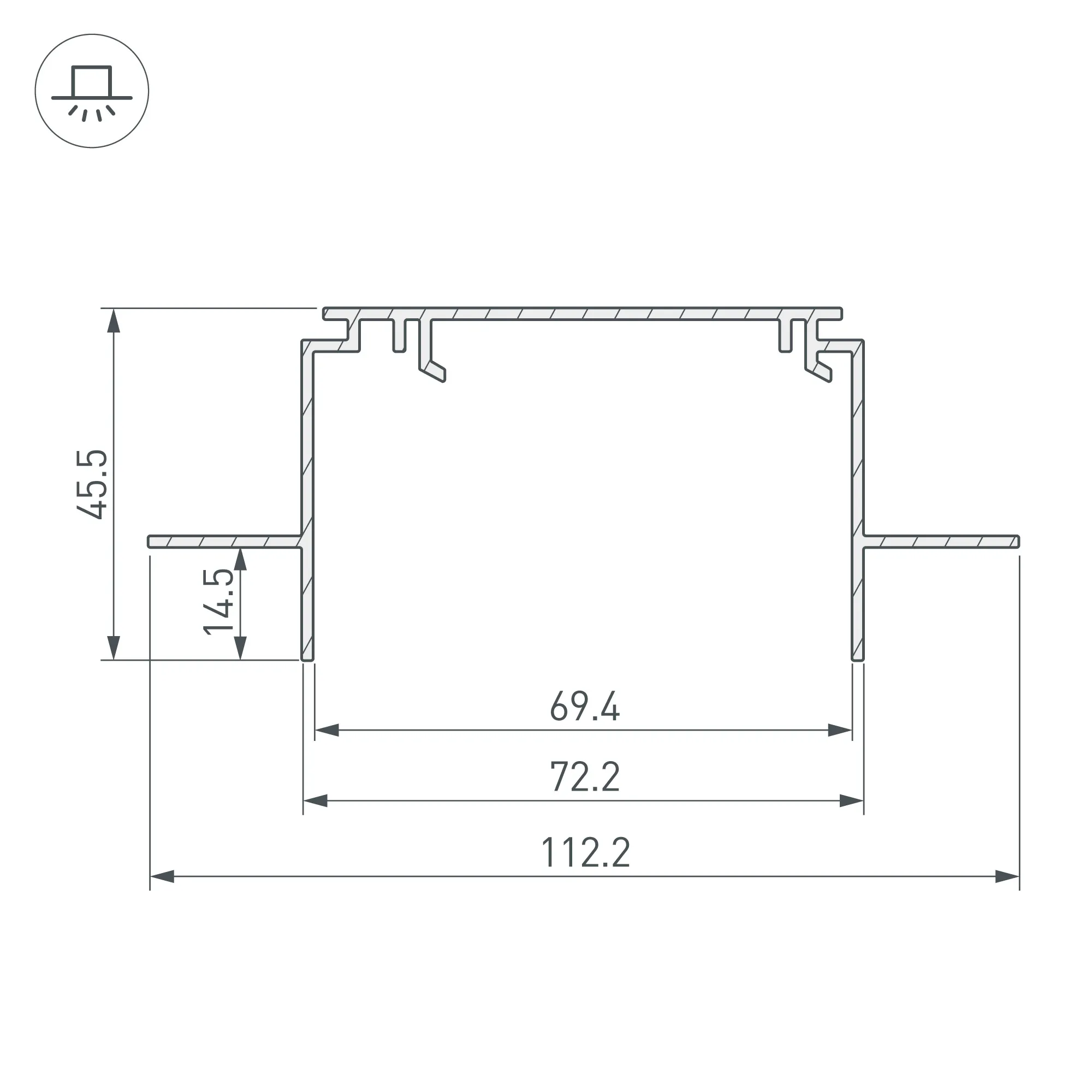 Под заказ от 20 м. Алюминиевый профиль-держатель для встраивания в гипсокартон толщиной 12,5 мм. Можно установить профиль POWER-RW70F(-S) при помощи арт. 019880 Скоба для TEK-POWER (отдельно) из расчета 4шт на 1м профиля. Габаритные размеры (L×W×H): 2000x112,2x45,5 мм. Паз для установки 72.2 мм. Заглушки и другие аксессуары приобретаются отдельно. Цена за 1 метр.