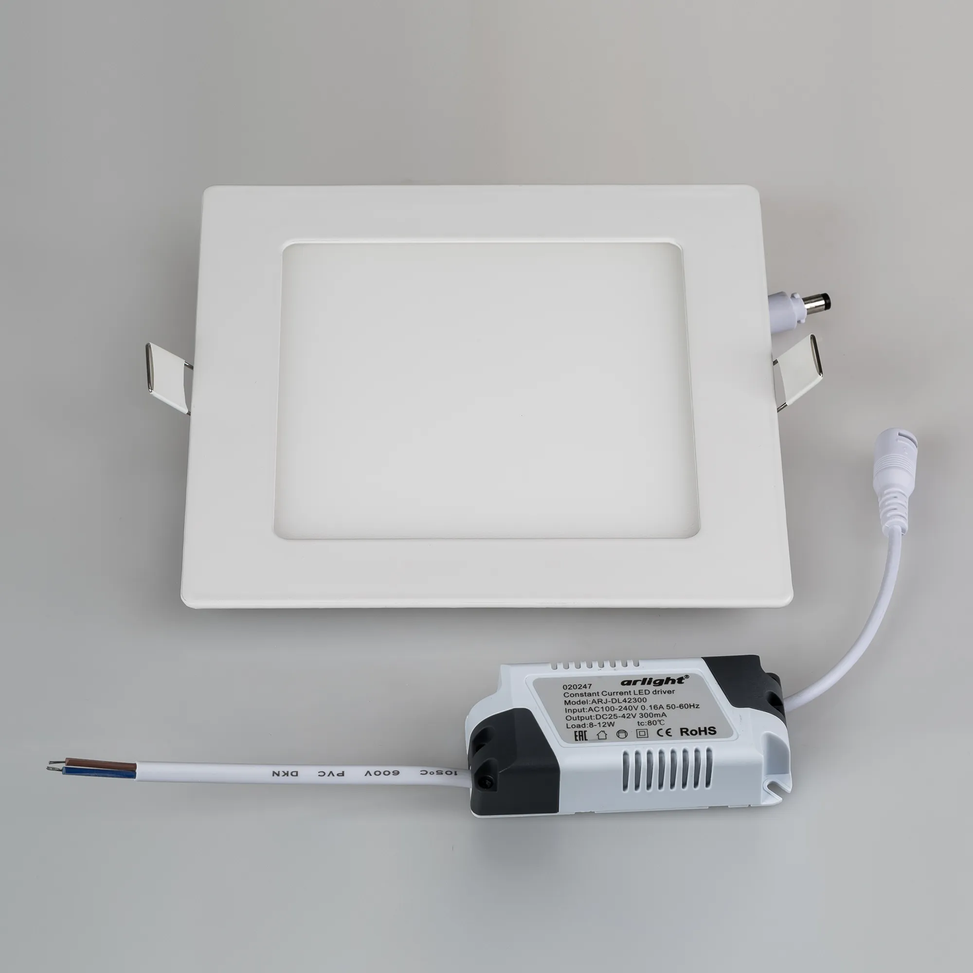 Тонкая панель 12Вт, белый квадратный корпус. Цвет ДНЕВНОЙ БЕЛЫЙ 4000K, св.поток 930лм, CRI(Ra)>80, угол 110°. Размер 172x172x25 мм, установка в отверстие 148x148 мм. Питание AC 100-240V, 12Вт, драйвер в комплекте (DC300mA, 25-42V).