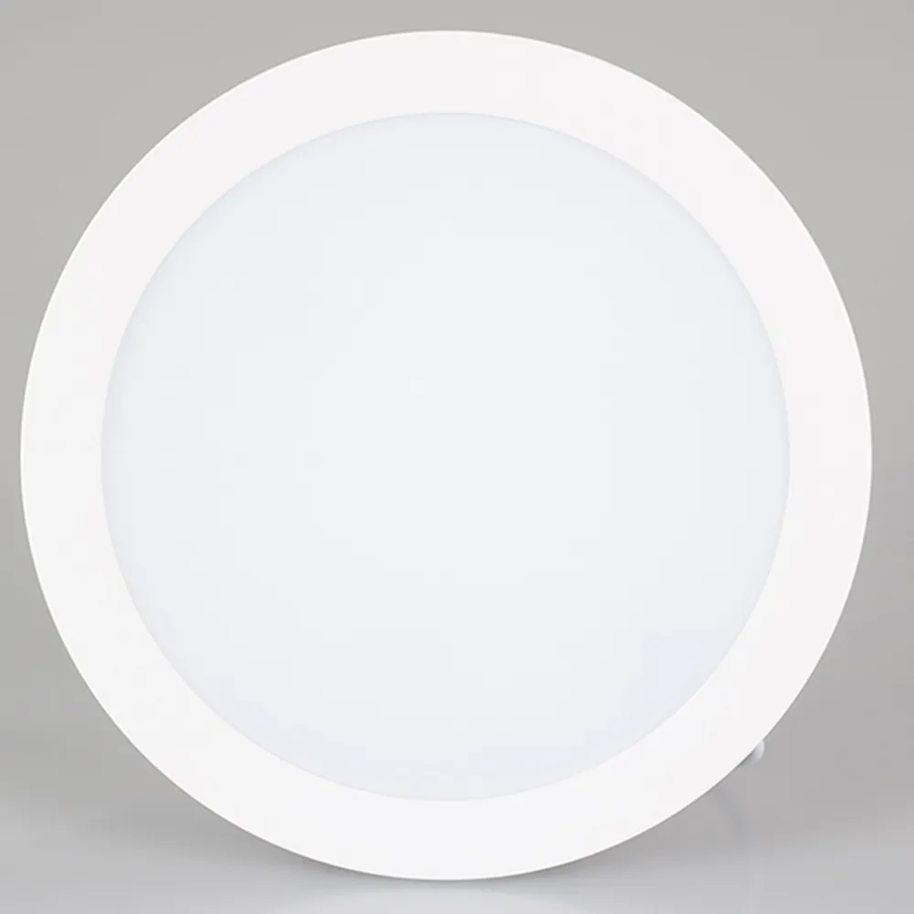 Светодиодная панель 18Вт, корпус белый IP40, круглый. Цвет БЕЛЫЙ 6000K, св.поток 1440-1620лм, CRI(Ra)>80, угол 100°. Размер Ф180x24 мм, установка в отверстие 165 мм. Питание AC 180-240V, 18Вт, DC500mA 32...40V, драйвер в комплекте, пульсация <2%.