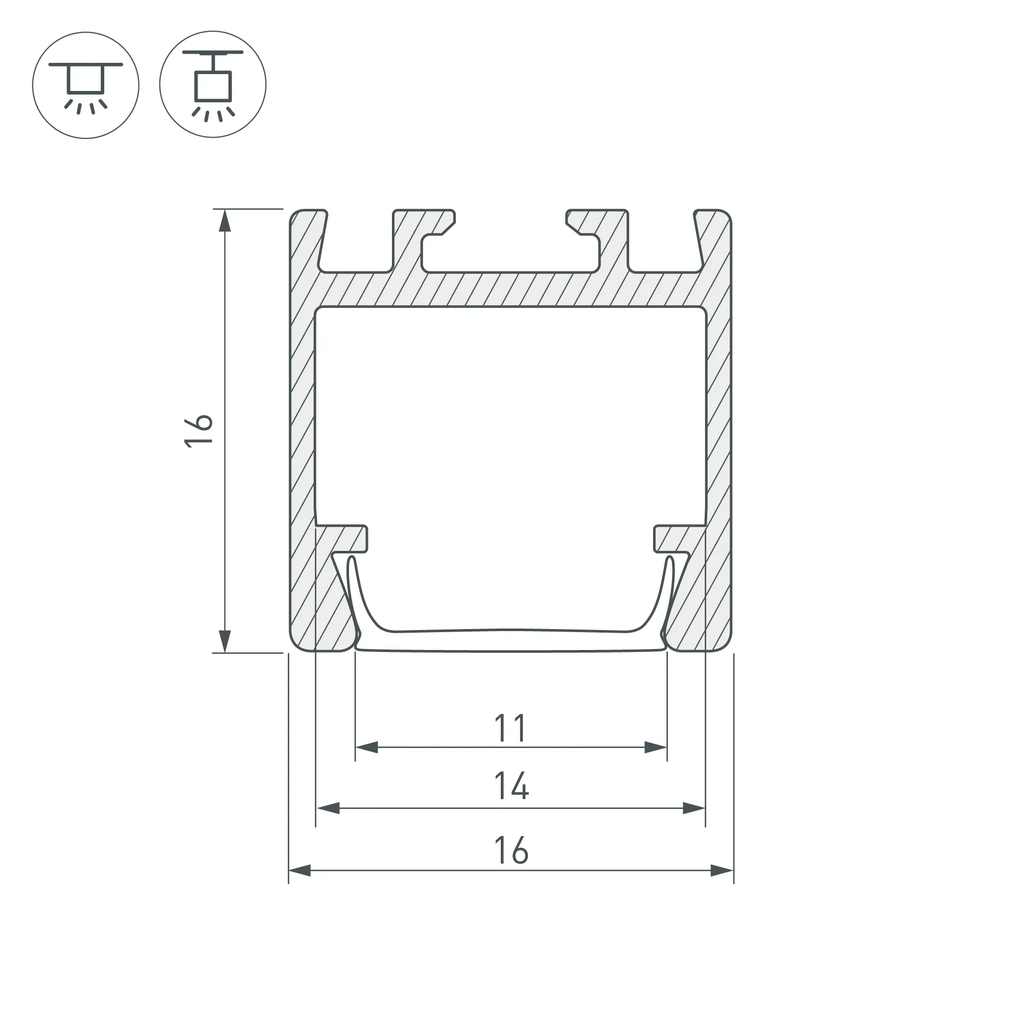 Алюминиевый анодированный профиль для светодиодных лент и линеек. Габаритные размеры (L×W×H): 2000x16x16 мм. Ширина площадки для ленты 14 мм. Экраны, заглушки и другие аксессуары приобретаются отдельно. Цена за 1 метр.