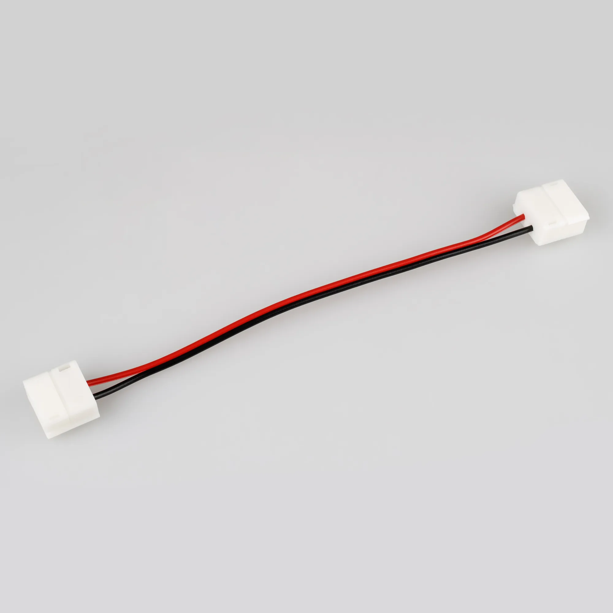 Двойной коннектор с проводом 15см для соединения 2-х отрезков ГЕРМЕТИЧНЫХ светодиодных одноцветных лент шириной 10мм. Материал - пластик. Максимальный допустимый ток 3А, напряжение до 50 В. Цена за 1шт.