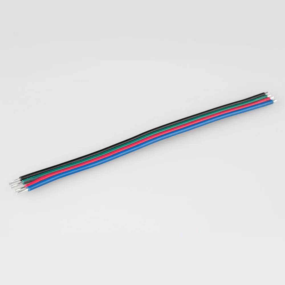 Отрезок провода 4 цветные жилы R/G/B/Black, 20AWG, длина 12 см. Для соединения RGB лент. Максимальный допустимый ток 3А. Цена за 1шт. Заменяется на 026353.