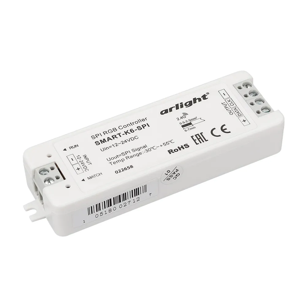 В магазине Мельковский Свет Вы можете купить "Контроллер SMART-K6-SPI (12-24V, 2.4G) (Arlight, IP20 Пластик, 5 лет)"