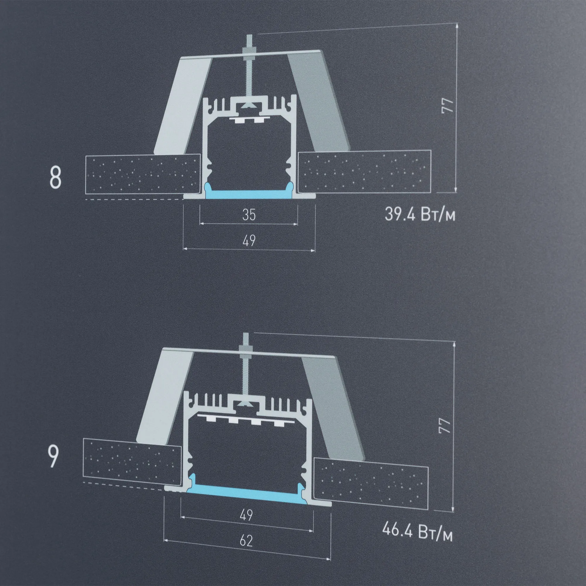 Встраиваемые алюминиевые профили серий S-LUX, ALU, ARH с подсветкой. Материал - алюмобонд.