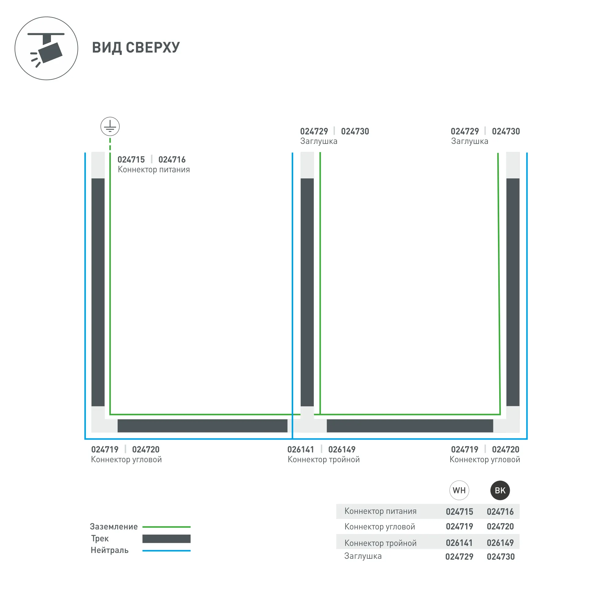 Коннектор-заглушка для подачи питания в треки 4TR, правая (определение правого коннектора происходит относительно контакта заземления системы). Цвет белый.