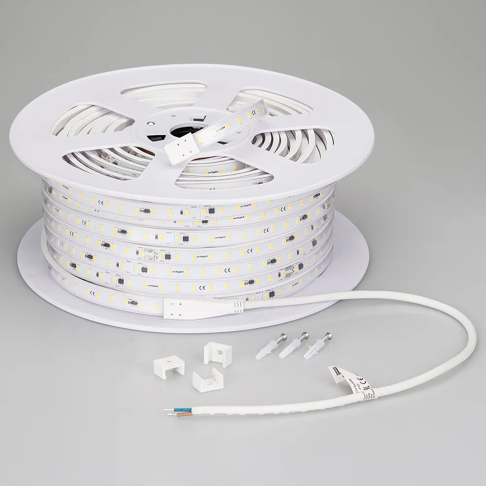 В магазине Мельковский Свет Вы можете купить "Лента светодиодная ARL-50000PC-220V Warm3000 (3056, 72 LED/m, IP65) (Arlight, 14 Вт/м, IP65)"