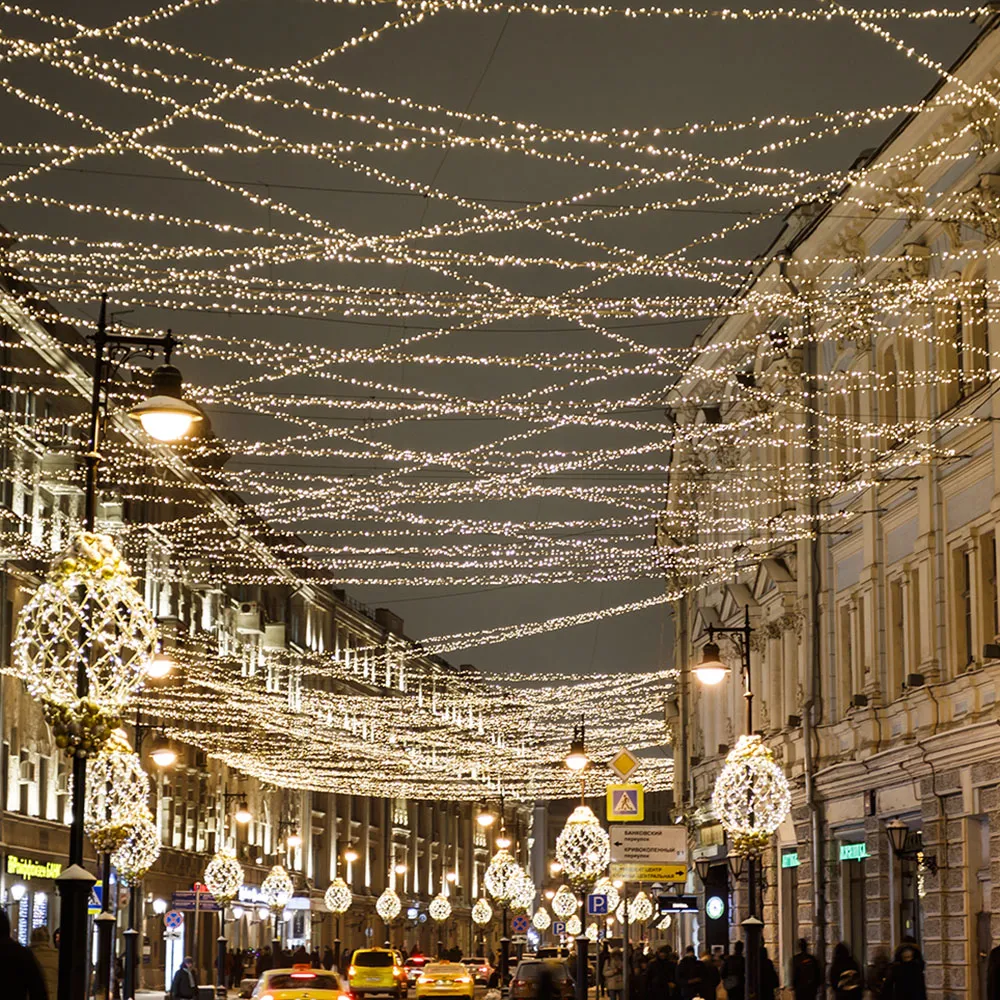 Светодиодная нить Classic. Размер 10000 мм. 100 светодиодов размером 7 мм. Основной цвет свечения ТЕПЛЫЙ БЕЛЫЙ (3000 К), эффект мерцания редких точек (БЕЛЫЙ 6000К) с резким световым рисунком (прозрачная вогнутая линза), соотношение светодиодов: 84 теплых постоянного свечения / 16 белых с мерцанием. Эффект частого мерцания. Провод прозрачный, ПВХ. Питание 230 В, Мощность 7 Вт, защита IP65, применение в помещении и на улице под навесом. Аксессуар для подключения приобретается отдельно.