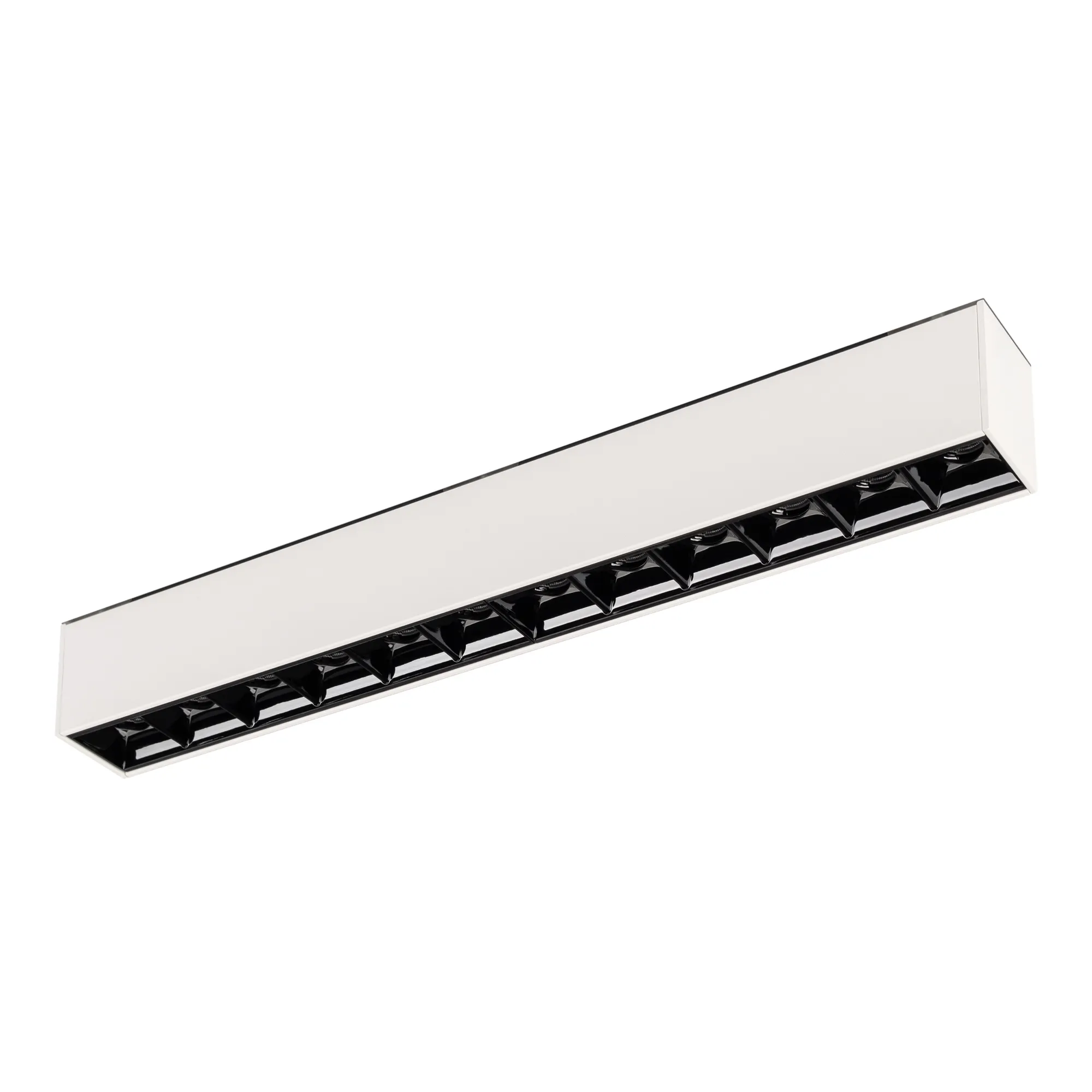Светильник для магнитных треков шириной 45мм, 12Вт. Цвет свечения ДНЕВНОЙ 4000K, световой поток 890лм, угол 15°, CRI>90. Корпус прямоугольный, металл, цвет белый, IP20. Размеры LxWxH 322x35x43мм. Входное напряжение DC24V, мощность 12Вт. Драйвер DС24V/AC230V поставляется отдельно. Диммируется только с 026407(1), 027633.