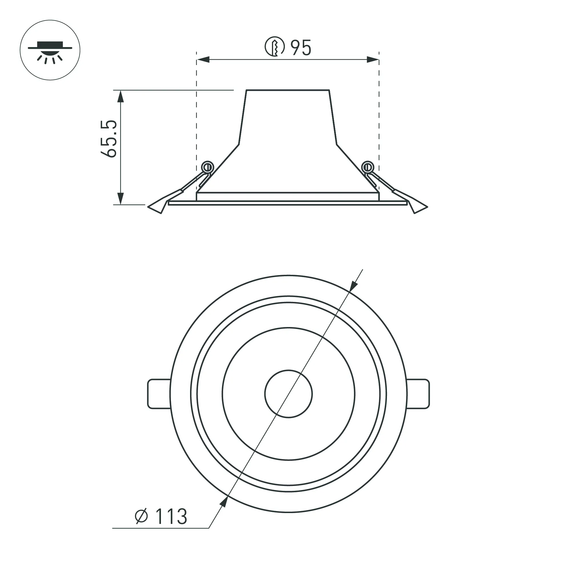 Встраиваемый светильник "Даунлайт" 10Вт. Цвет свечения БЕЛЫЙ 6000К. Световой поток 880лм, угол 50°, CRI>80. Белый корпус. Питание AC220-240V. Габариты: Ø113х65.5мм, врезное отверстие Ø90-102мм. Драйвер в комплекте (21-35V, 350mA).