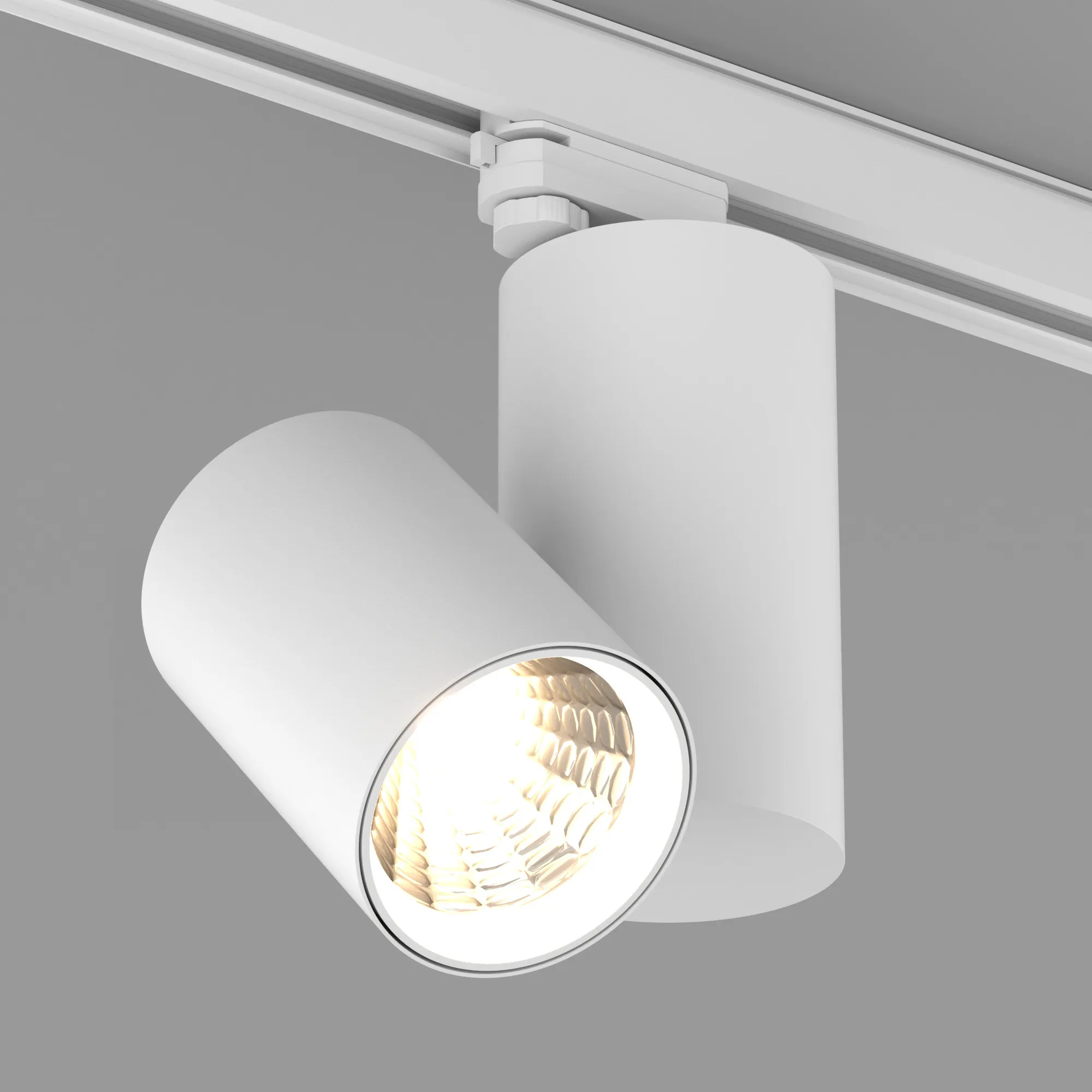 Трековый светильник 15Вт, белый круглый корпус, белая вставка, металл.