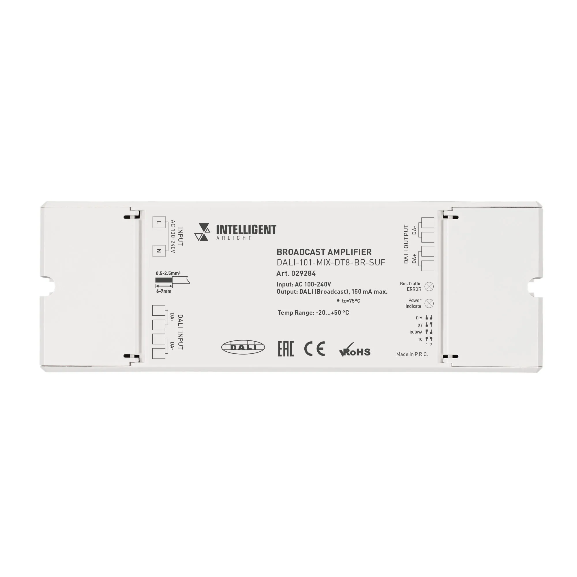 В магазине Мельковский Свет Вы можете купить "INTELLIGENT ARLIGHT Усилитель DALI-101-MIX-DT8-BR-SUF (DALI bus, 230V) (IARL, -)"