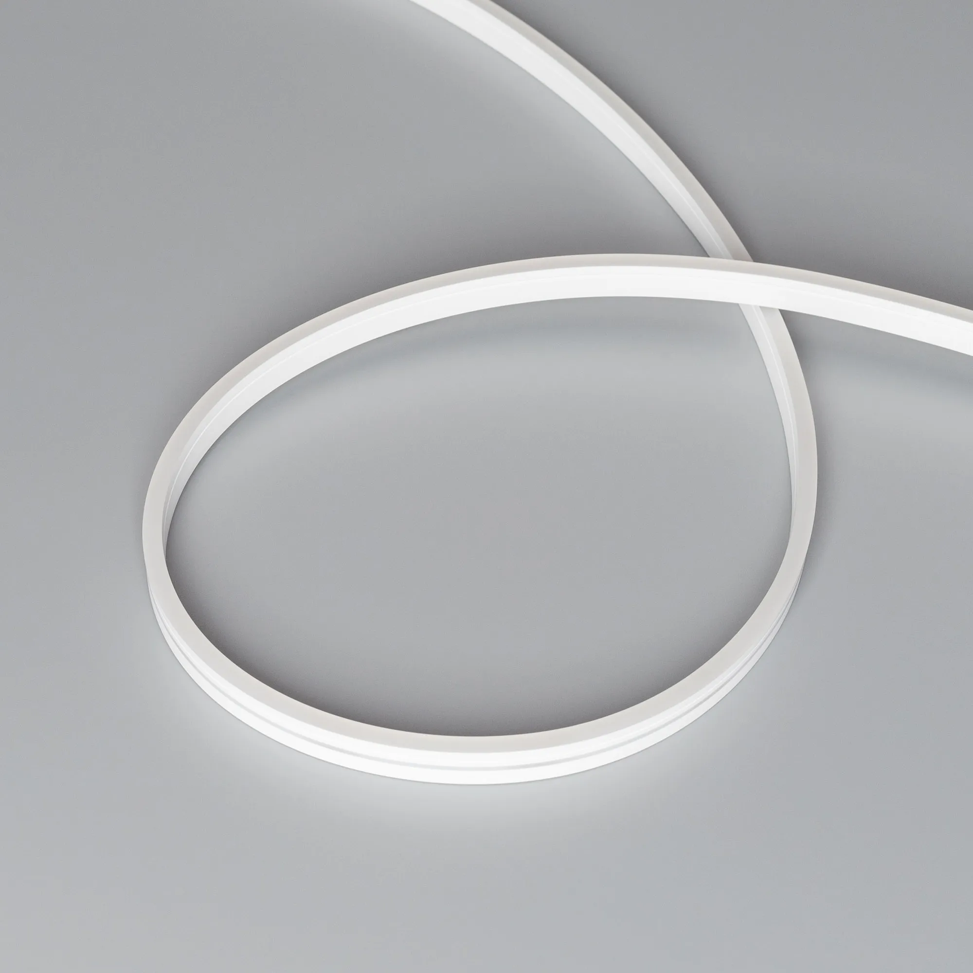 ОБРАЗЕЦ Ультра яркий гибкий неон MOONLIGHT в силиконовой оболочке. Светодиоды SMD2835, 168 шт-м, цвет ТЁПЛЫЙ БЕЛЫЙ 3000К, световой поток 300 люмен-метр. Сечение 10х4 мм, боковой изгиб, IP65, шаг резки 42 мм (7 светодиодов), мощность 6.8 Вт-м, напряжение питания DC 24, минимальный радиус изгиба 30 мм. В комплекте: 1 силовой коннектор, 1 заглушка, 1 шнур питания.