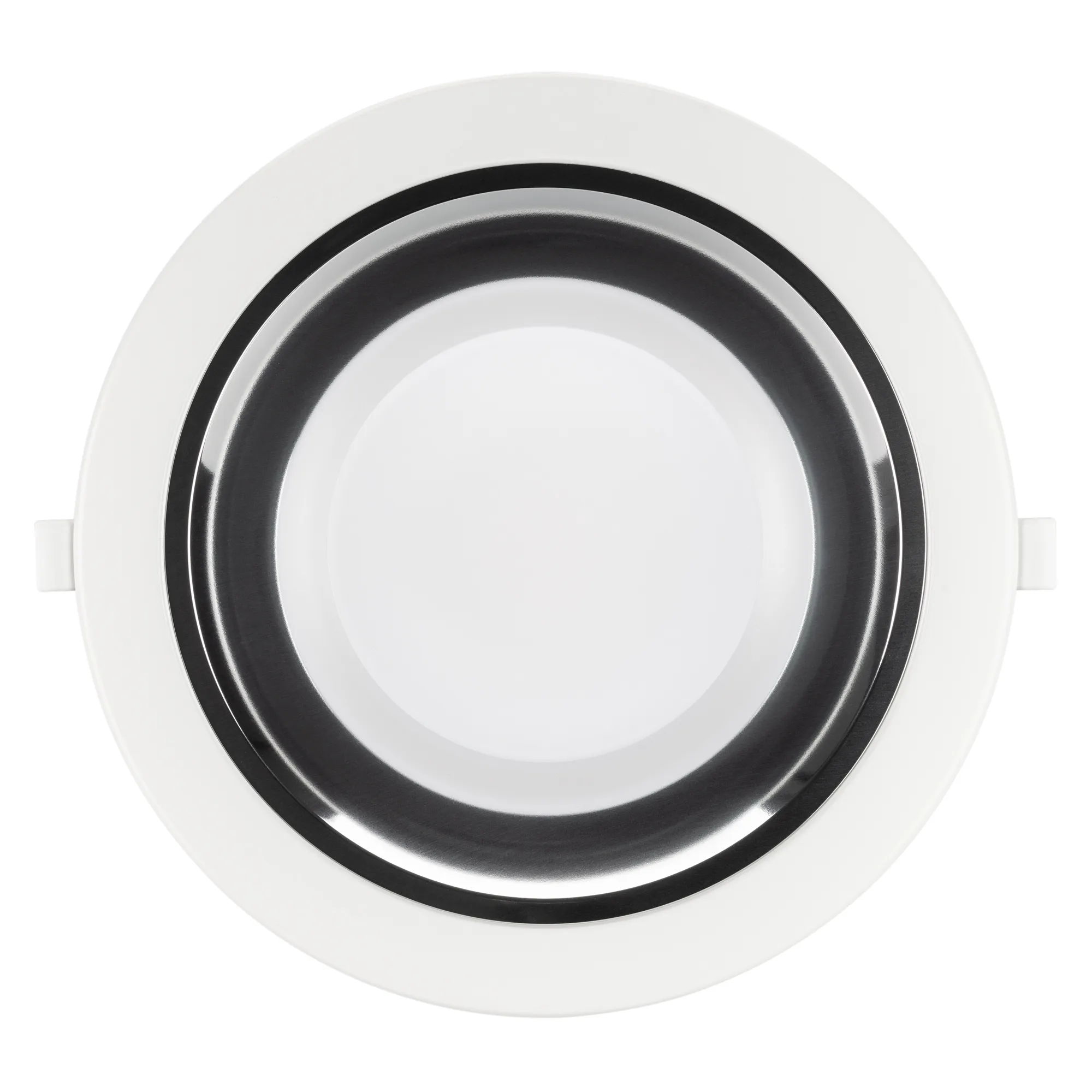 Светильник даунлайт с изменяемой цветовой температурой и переключателем на корпусе. Мощность 28 Вт, св. поток 3000 лм, 108 лм/Вт, белый 6000К, или дневной 4000К, или теплый 3000К (выбор цвета свечения при установке, фиксированный), CRI>80, угол 80°, напряжение питания 230 В. Белый круглый корпус из алюминия, степень защиты IP20. Размер: диаметр 232 мм, высота 83 мм. Монтаж встраиваемый, установочное отверстие: диаметр 195-210 мм. Драйвер 25-43 В, 700 мА, пульсация <0,7%.