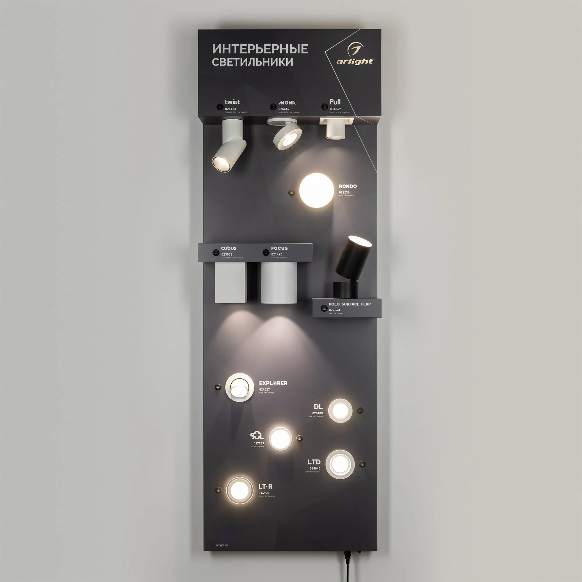 Наши специалисты знают все о продукции Arlight и с радостью помогут Вам выбрать комплектующие к товару "Стенд Интерьерные светильники Е31-1760х600mm (DB 3мм, пленка) (Arlight, -)", или другие товары из раздела "Светодиодные светильники".