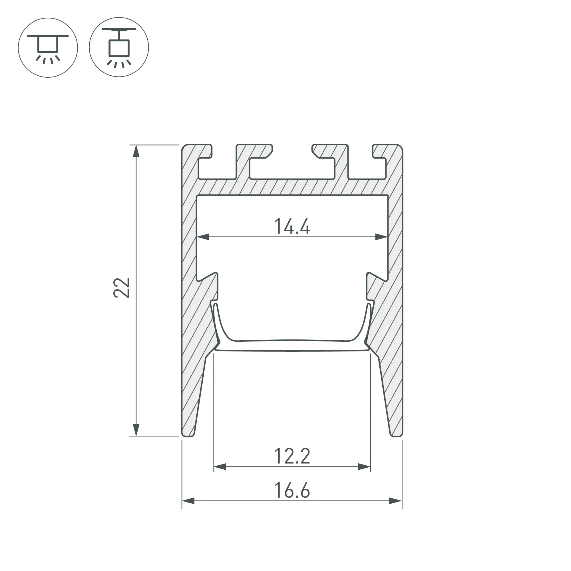 Алюминиевый анодированный профиль для светодиодных лент и линеек. Экран утоплен в плоскости профиля, что позволяет скрыть источник света от прямого контакта с глазами. Цвет - чёрный. Габаритные размеры (L×W×H): 2000x16,6x22 мм. Ширина площадки для ленты 14,4 мм. Экраны, заглушки и другие аксессуары приобретаются отдельно. Цена за 1 метр.