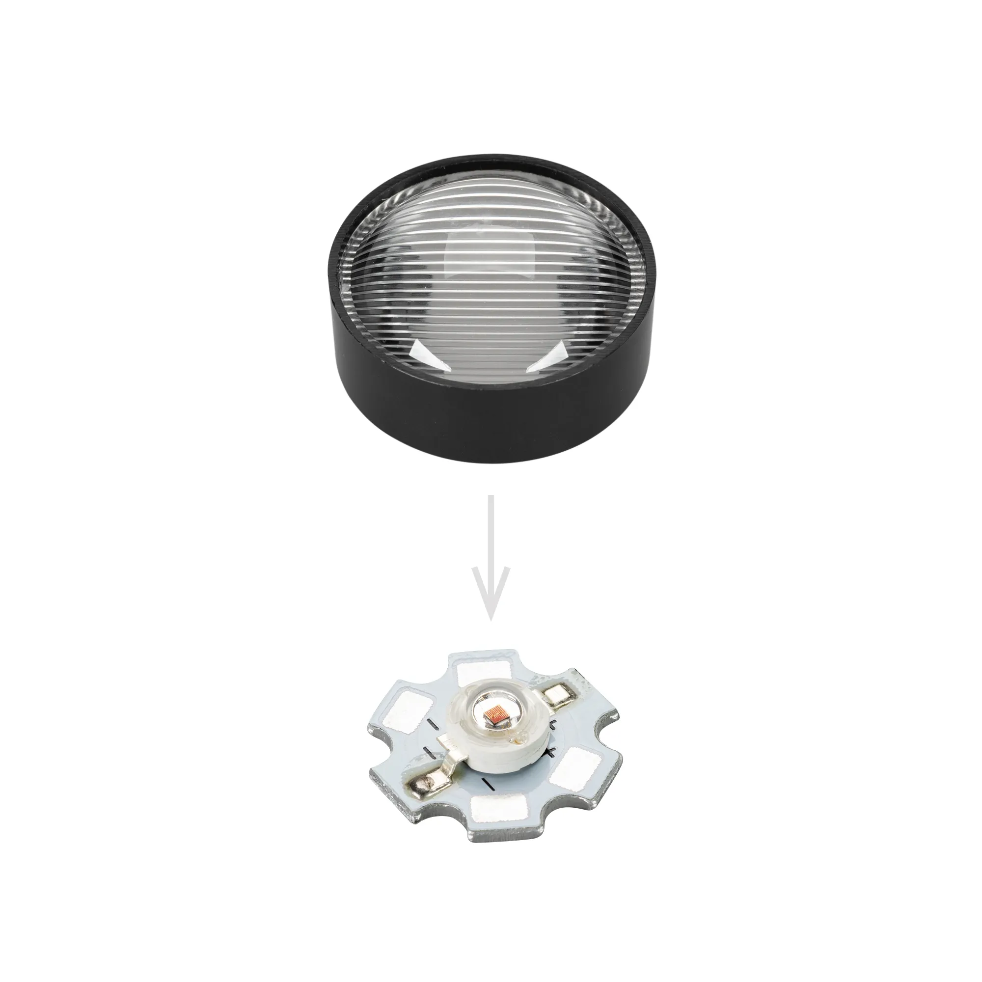 Одиночная линза со съемным холдером черного цвета для мощного светодиода Emitter.Угол обзора: вертикальный 65°, горизонтальный 120°, прозрачная микропризма. Материал PMMA. Диаметр 24.60 мм, высота 13.93 мм. Великолепно подходит для RGB-mix смешивания.