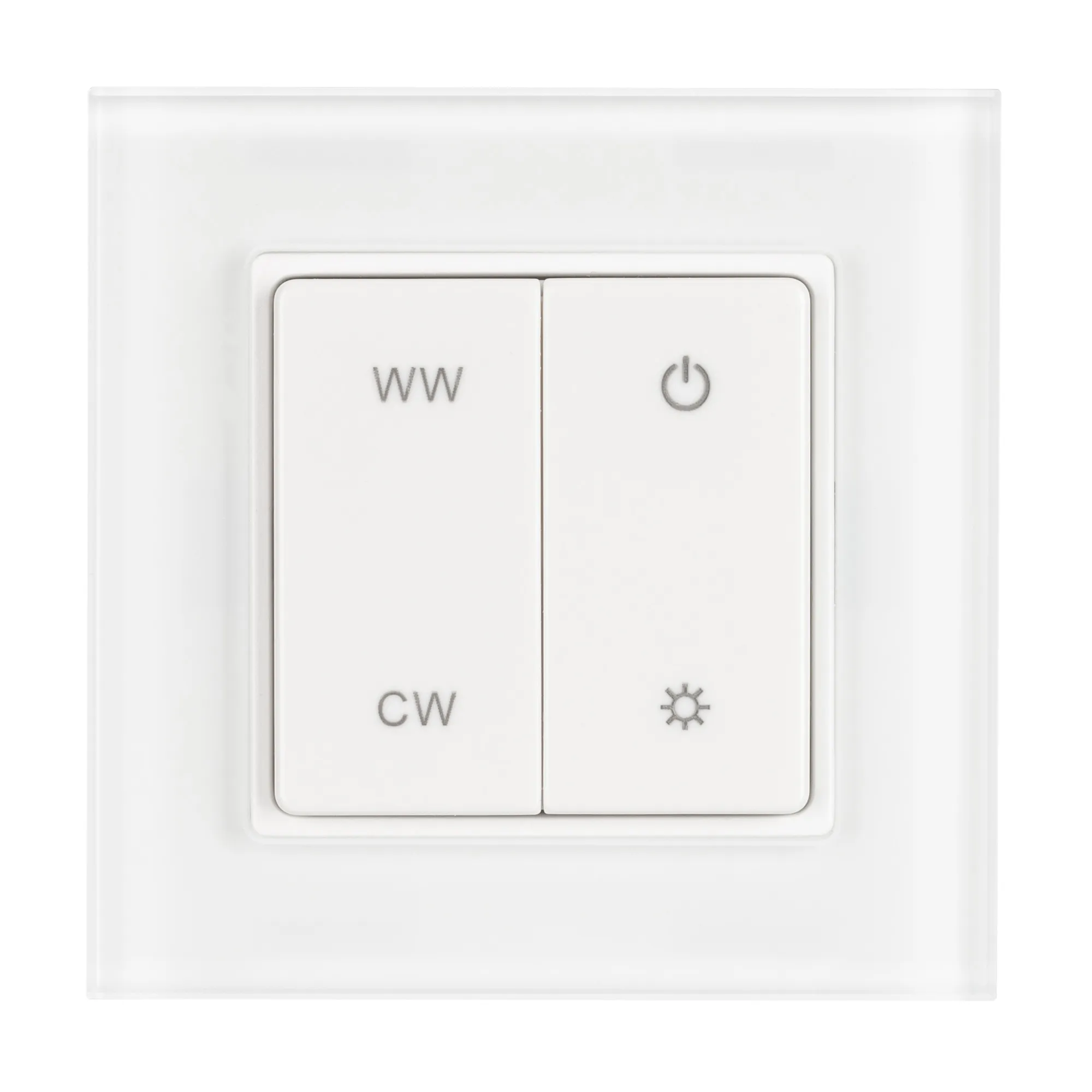 Накладная кнопочная панель 2.4 ГГц, цвет белый. Материал - стекло. Для управления мультибелыми (MIX) источниками света (ШИМ), 1 зона управления. Питание/рабочее напряжение 3VDC от батарейки CR2032. Габариты 86х86х15 мм. Совместима с контроллерами SMART.