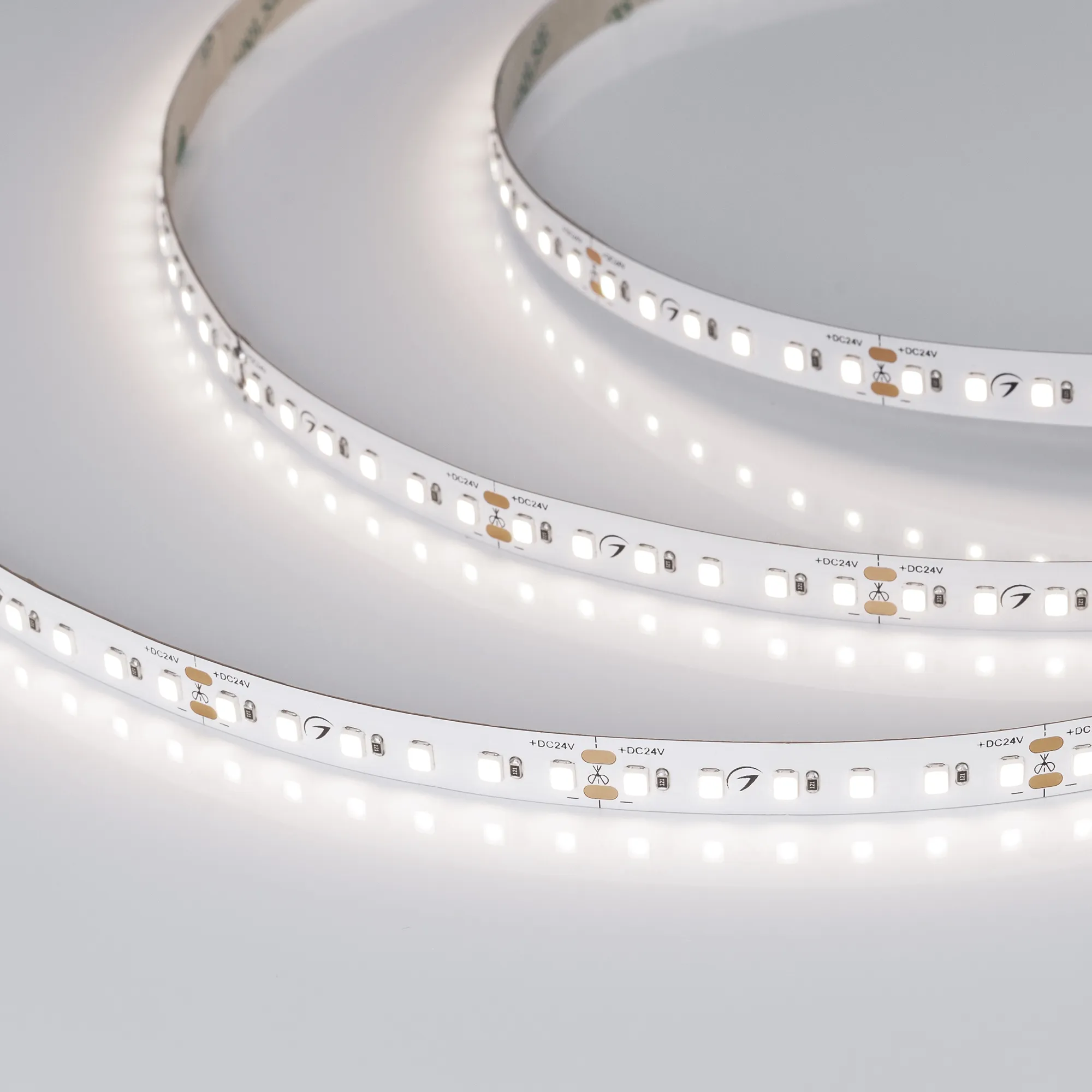 Светодиодная лента повышенной прочности TWIST серии A120. Светодиоды SMD 2835, 120 шт/м, белая плата шириной 10 мм, скотч 3M. Цвет ДНЕВНОЙ 4000K, индекс цветопередачи CRI>90, угол 120°. Питание 24 В, мощность 10 Вт/м (50 Вт на 5 м). Размеры 5000x10x1.5 мм. Мин. отрезок 50 мм, 6 светодиодов. Цена за 1 м.