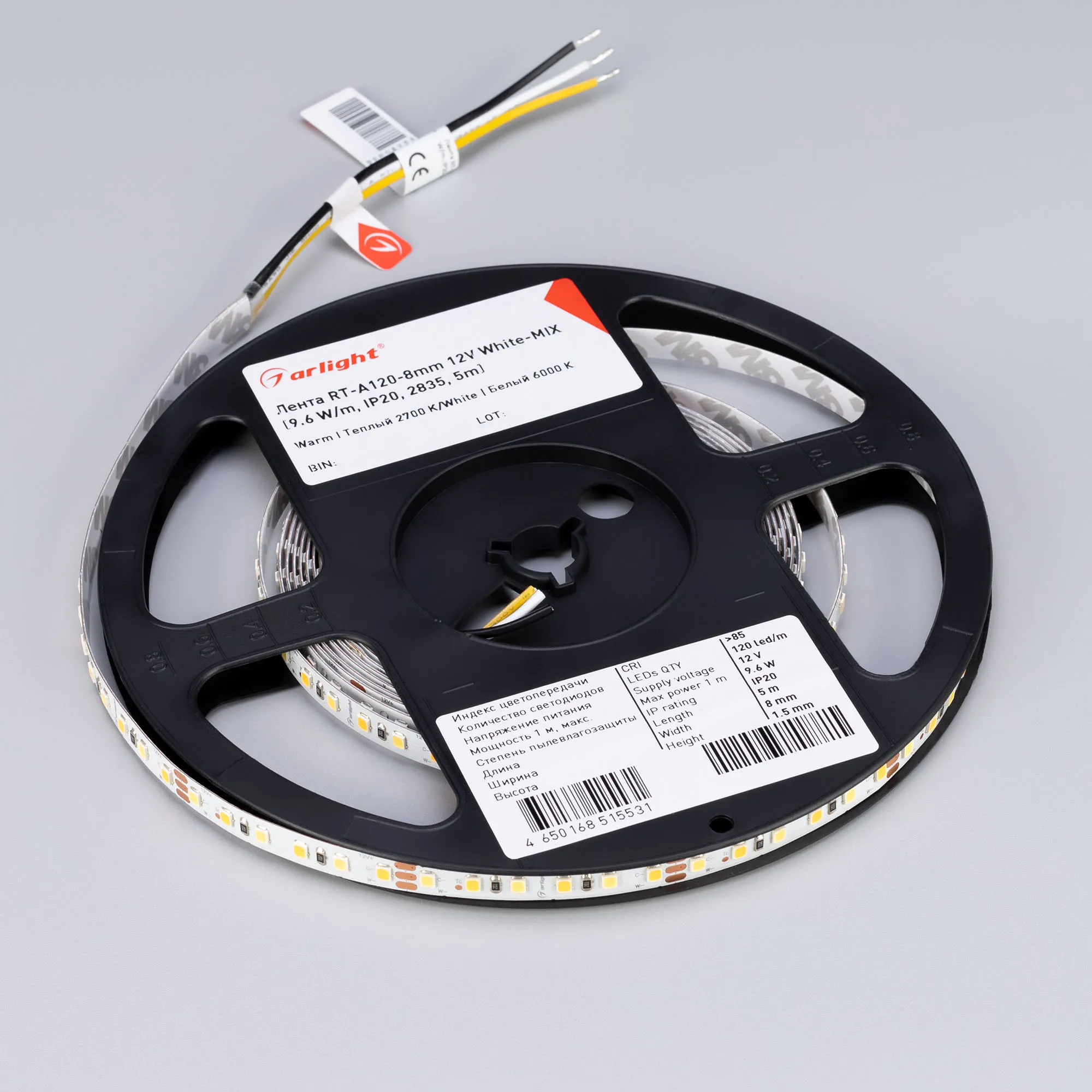В магазине Arled Market Вы можете купить "Лента светодиодная RT-A120-8mm 12V White-MIX (9.6 W/m, IP20, 2835, 5m) (Arlight, Изменяемая ЦТ)"