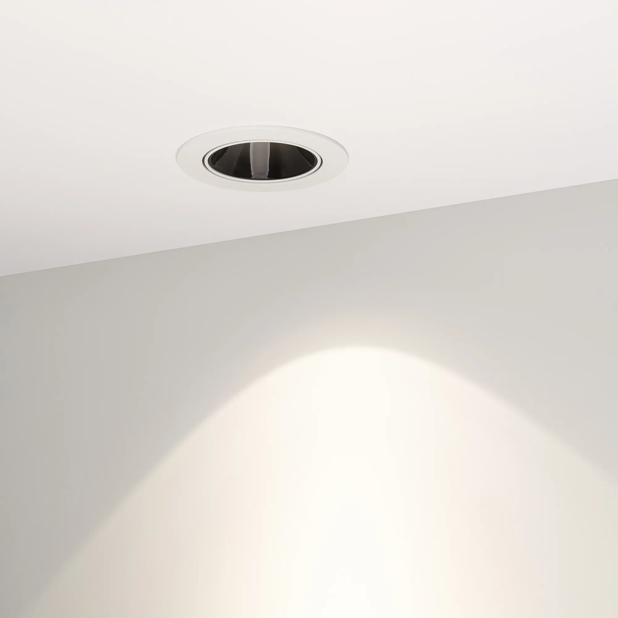 Встраиваемый поворотный светильник даунлайт. Мощность 12 Вт,св. поток 910 лм, 76 лм/Вт, дневной 4000 K, CRI>90, UGR<16, угол 32°, напряжение питания 230 В. Белый круглый корпус из алюминия, черный ГЛЯНЦЕВЫЙ отражатель из PMMA, степень защиты IP20. Размер: диаметр 102 мм, высота 70 мм. Монтаж встраиваемый, установочное отверстие: диаметр 95 мм. Драйвер 20-40 В, 300 мА, пульсация <2%.