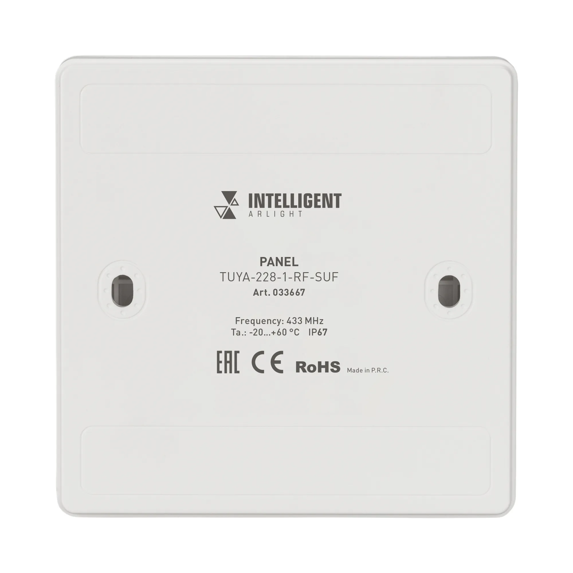 В магазине Мельковский Свет Вы можете купить "INTELLIGENT ARLIGHT Панель TUYA-228-1-RF-SUF (kinetic, 433MHz) (IARL, IP67 Пластик, 3 года)"