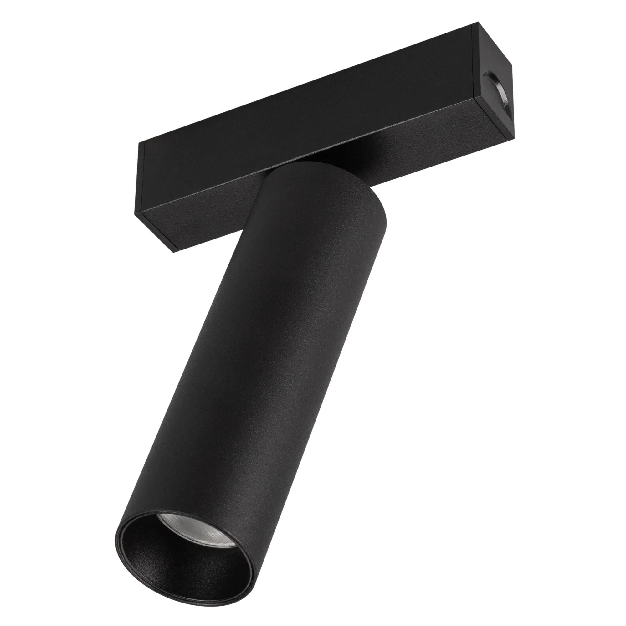Светильник поворотный для магнитных треков шириной 25 мм, 12 Вт. Цвет свечения ТЕПЛЫЙ 3000K, световой поток 840лм, угол 30°, CRI>90. Корпус прямоугольный, металл, цвет черный, IP20. Размеры LxWxH 100x20x150 мм. Входное напряжение DC24V, мощность 12 Вт. Драйвер DС24V/AC230V поставляется отдельно.Диаметр светоизлучающего модуля 35 мм.