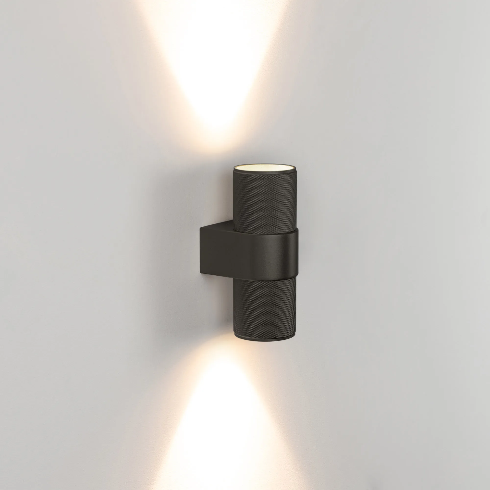 Настенный светильник со свечением в верхнюю и нижнюю полусферу. Мощность 2x6 Вт, св. поток 900 лм, 68 лм/Вт, теплый 3000 K, CRI>90, угол 40°, напряжение питания 230 В. Черный фигурный корпус из алюминия, степень защиты IP20. Размер: длина 110 мм, ширина 72 мм, высота 180 мм. Монтаж накладной. Драйвер 27-42 В, 300 мА, пульсация <1%.