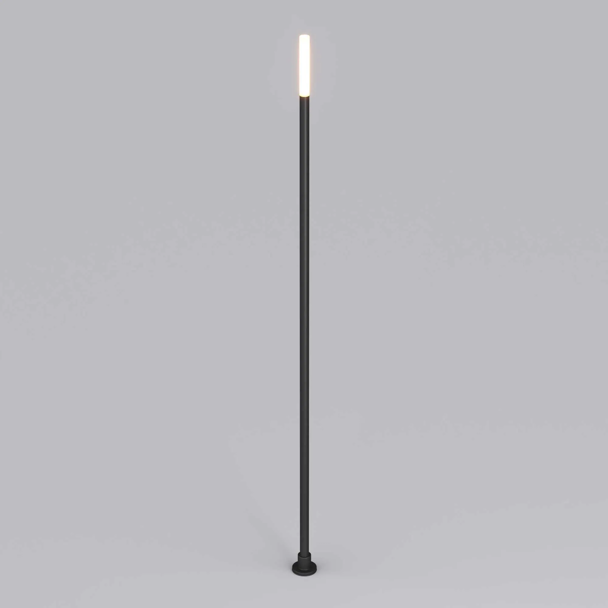 Декоративный ландшафтный светильник. Мощность 1.4 Вт, св. поток 35 лм, 25 лм/Вт, теплый 3000 K, CRI>80, угол 110°, напряжение питания 24 В. Темно-серый фигурный корпус из алюминия, экран PMMA, степень защиты IP65. Размер: диаметр 16 мм, высота 1000 мм. Монтаж в грунт. Длина питающего кабеля 1м. ВНИМАНИЕ! Светильник не поддерживает регулирование светового потока ШИМ.