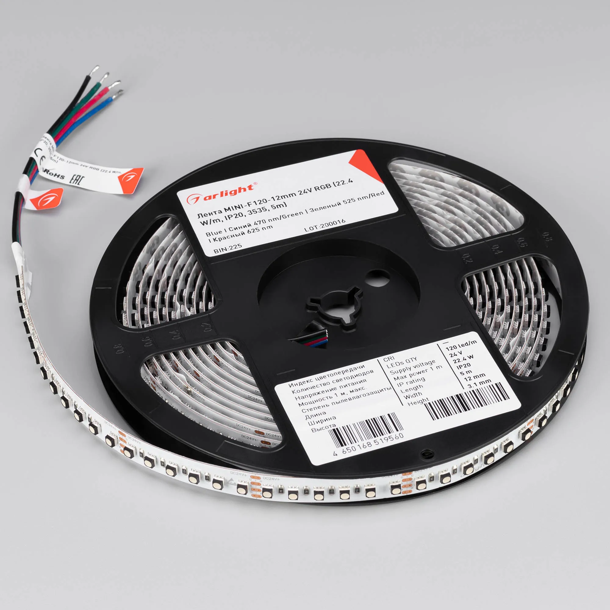 Лента светодиодная MINI-F120-12mm 24V RGB (22.4 W/m, IP20, 3535, 5m) (Arlight, Открытый)