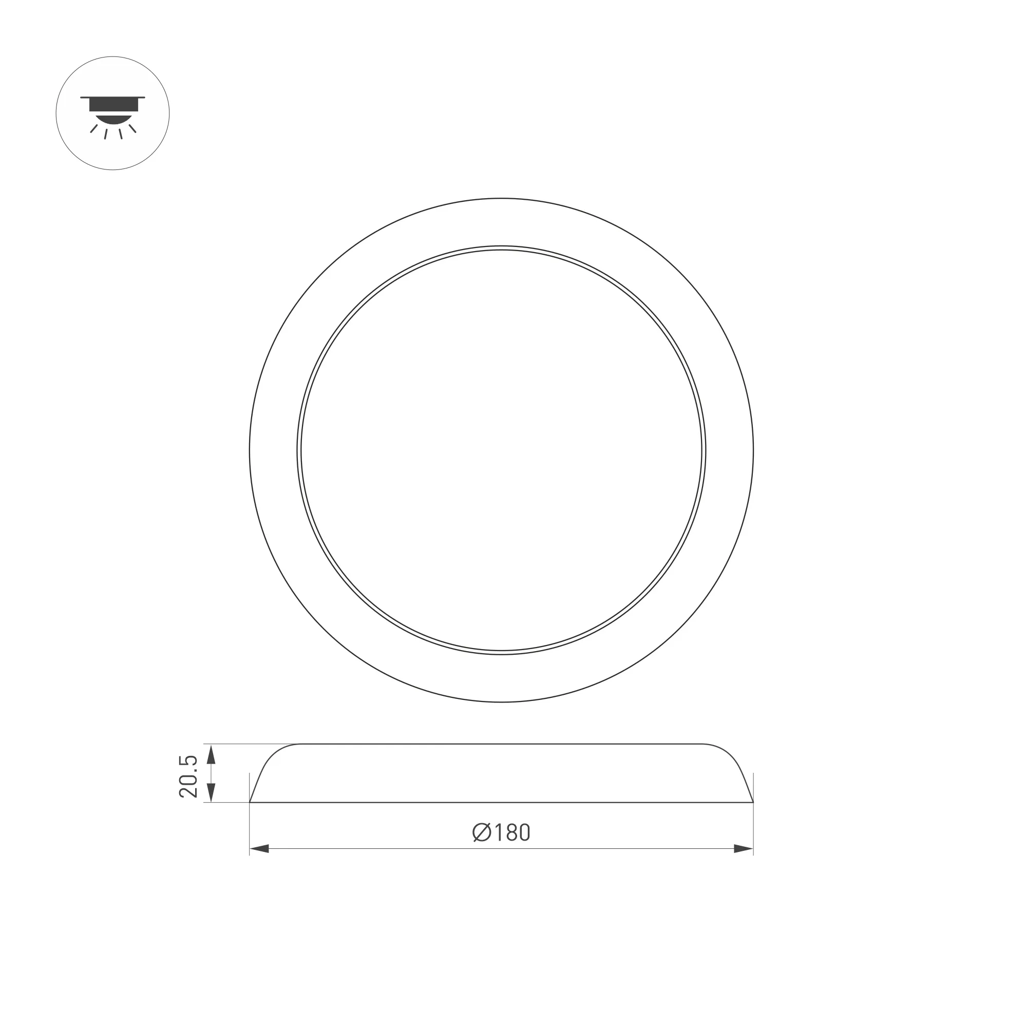 Накладной/встраиваемый светильник с изменяемой мощностью и цветовой температурой. Мощность 8-12 Вт, св. поток 600-900 лм, 75-90 лм/Вт, теплый 3000 K, дневной 4000K, белый 6000K, CRI>80, угол 120°, напряжение питания 230 В. Белый круглый корпус из пластика, экран поликарбонат, степень защиты IP44. Размер: диаметр 180 мм, высота 20,5 мм. Монтаж накладной/встраиваемый, установочное отверстие: диаметр 80-160 мм (регулируемое). Драйвер встроенный, пульсация <1%. Комплект крепежа для встраиваемого монтажа поставляется отдельно.