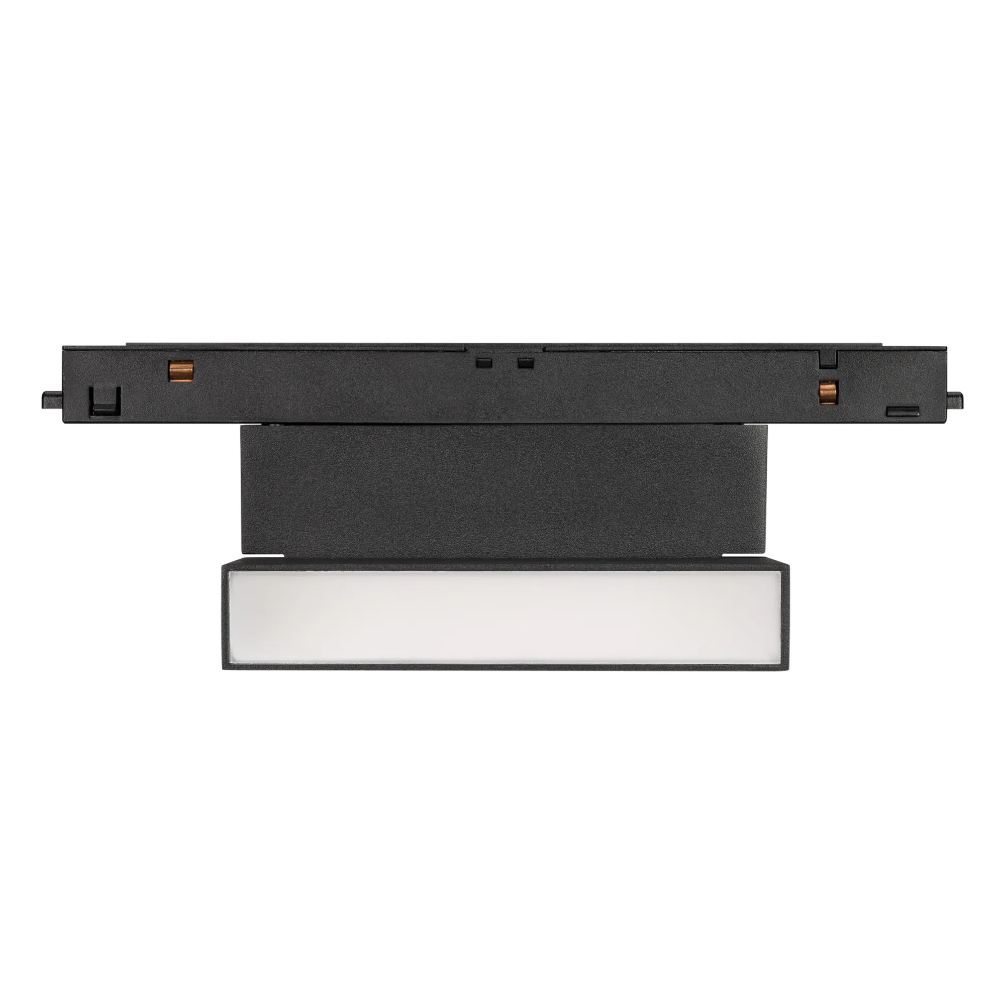Светильник для магнитных треков MAG-ORIENT шириной 26мм. Мощность 6 Вт, св. поток 375 лм, 63 лм/Вт, дневной 4000 K, CRI>90, угол 80°, напряжение питания 48 В. Черный прямоугольный корпус из металл, экран поликарбонат, степень защиты IP20. Размер: длина 195 мм, ширина 23 мм, высота 107 мм. Монтаж на трек MAG-ORIENT, пульсация <1%.