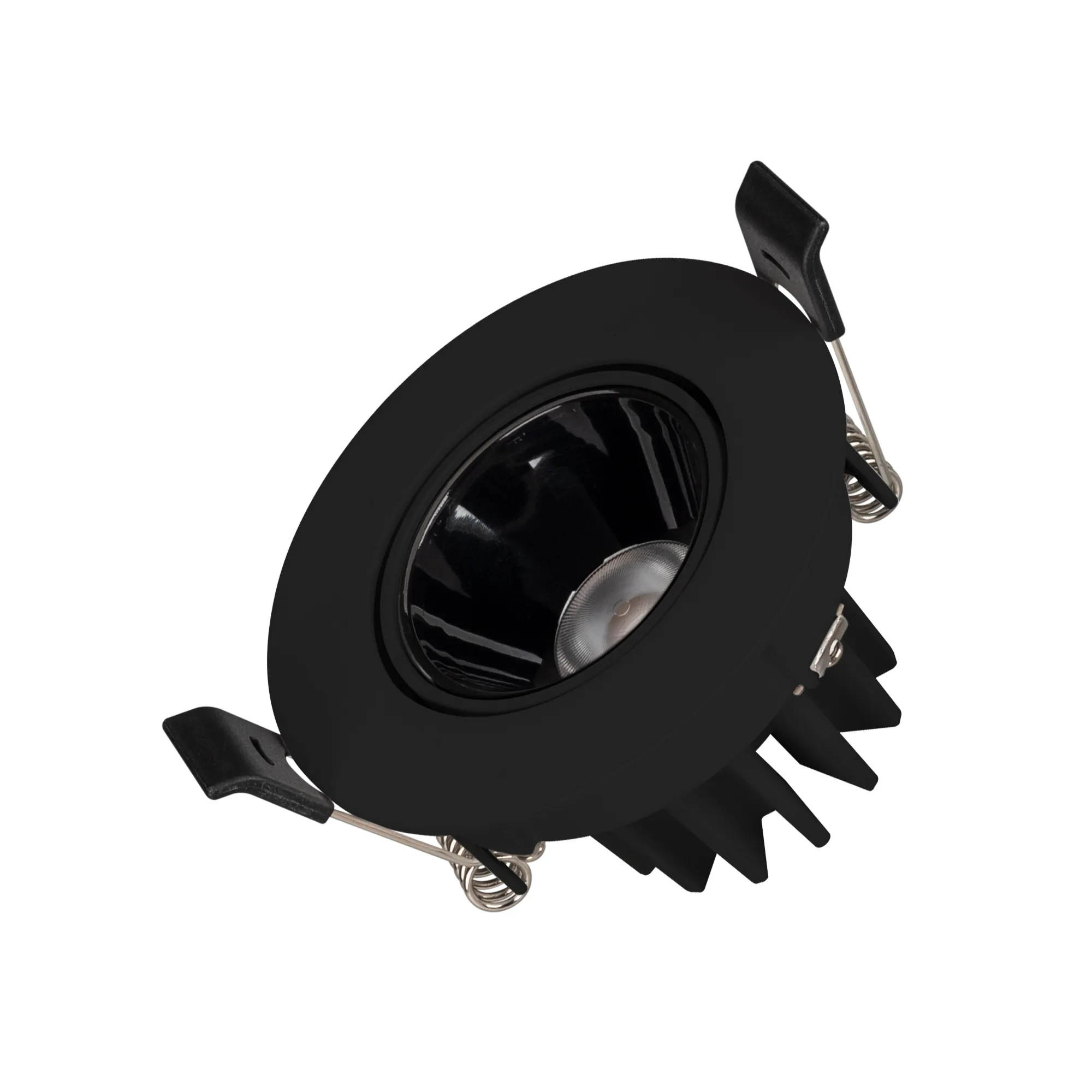 Встраиваемый поворотный светильник даунлайт. Мощность 8.4 Вт, св. поток 800 лм, 95 лм/Вт, дневной 4000 K, CRI>90, UGR<16, угол 32°, напряжение питания 230 В. Черный круглый корпус из алюминия, черный ГЛЯНЦЕВЫЙ отражатель из PMMA, степень защиты IP20. Размер: диаметр 82 мм, высота 51 мм. Монтаж встраиваемый, установочное отверстие: диаметр 75 мм. Драйвер 21-42 В, 200 мА, пульсация <2%.