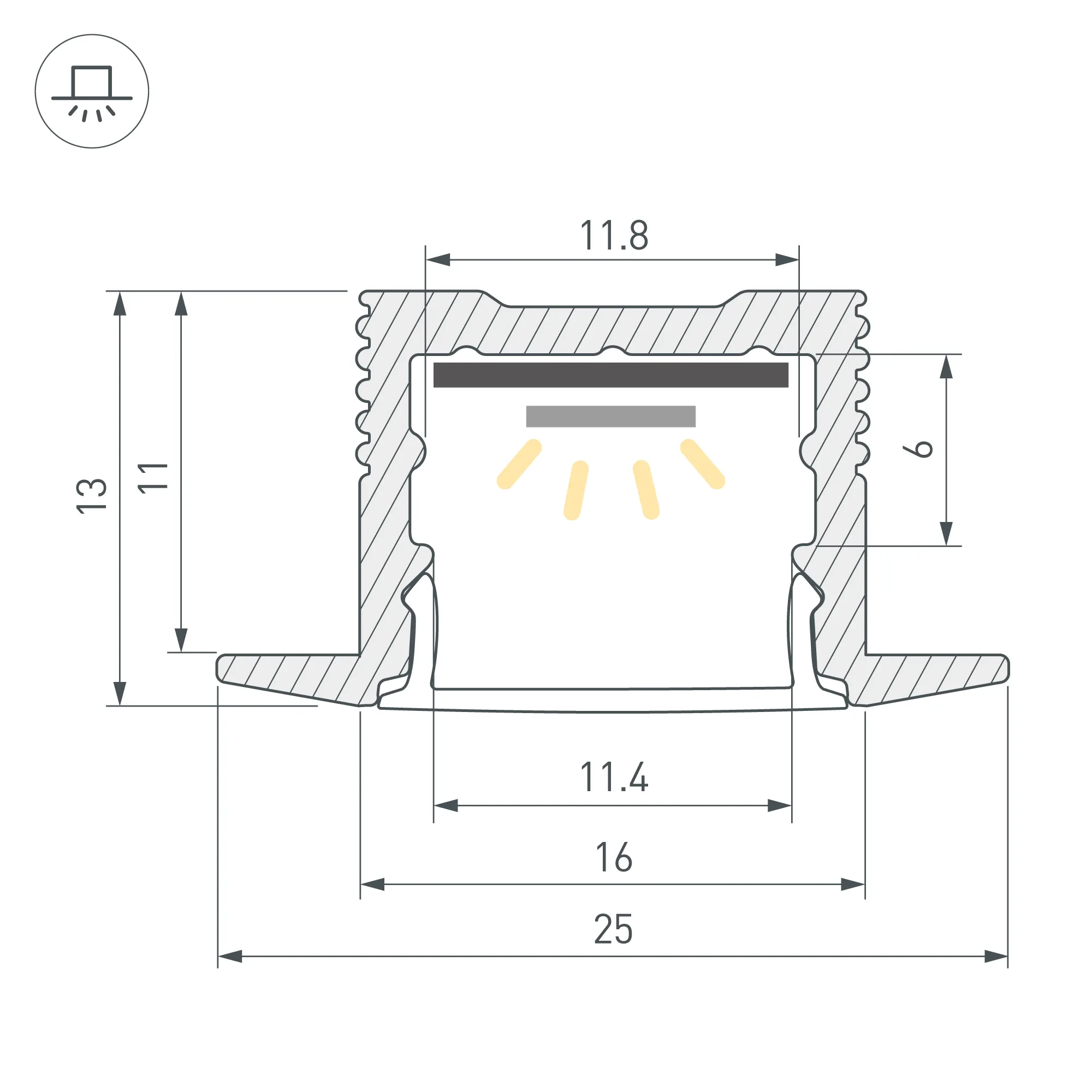 Алюминиевый анодированный профиль для светодиодных лент и линеек. Габаритные размеры (L×W×H): 3000x25x13 мм, паз для установки 16 мм. Ширина площадки для ленты 12 мм. Экраны, заглушки и другие аксессуары приобретаются отдельно. Цена за 1 метр.