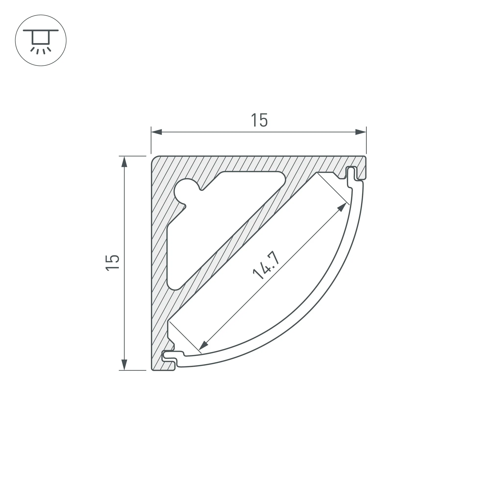 Алюминиевый анодированный угловой профиль для светодиодных лент и линеек. Габаритные размеры (L×W×H): 3000x15x15 мм. Ширина площадки для ленты 14,7 мм. Экраны, заглушки и другие аксессуары приобретаются отдельно. Цена за 1 метр.