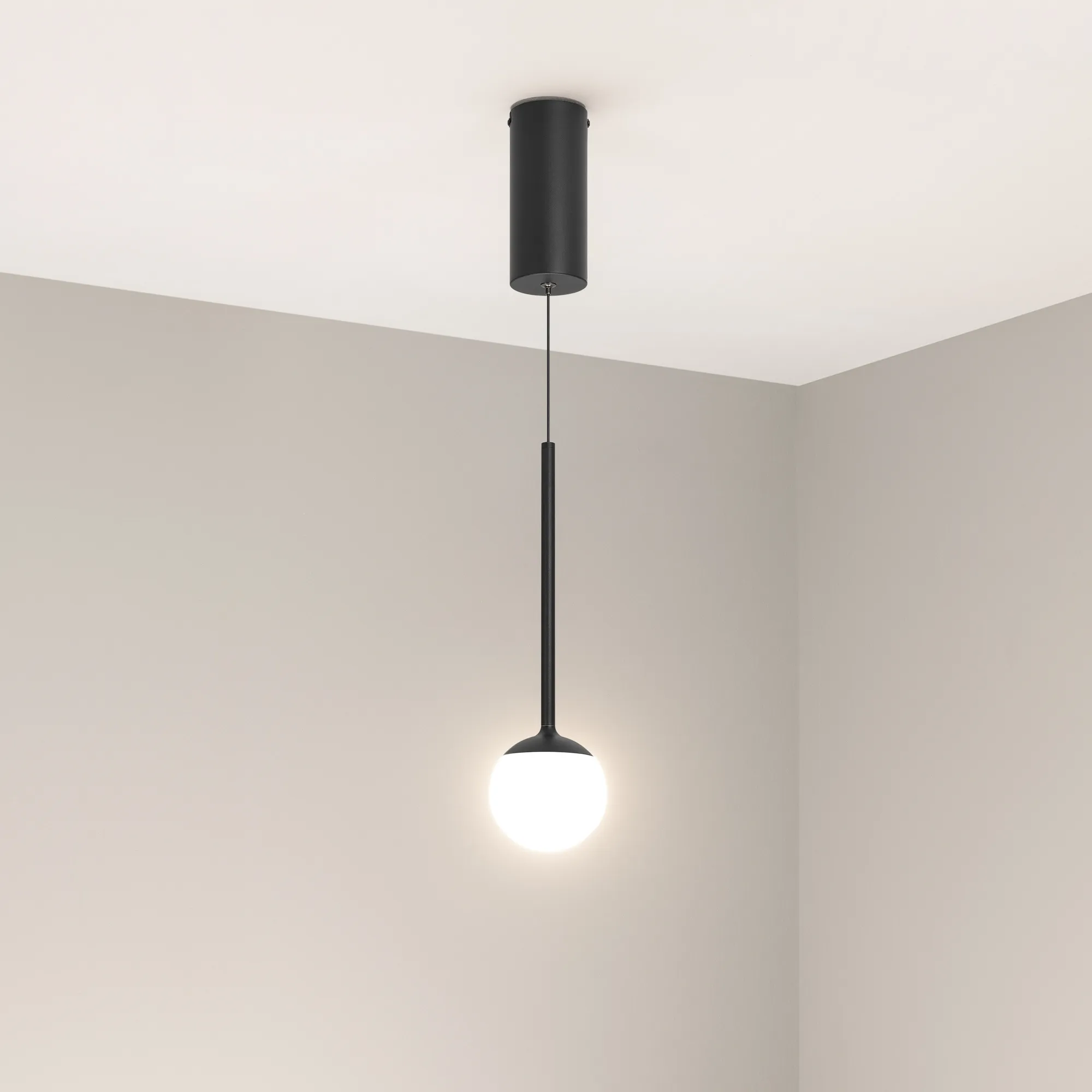 Подвесной светильник. Мощность 8 Вт, св. поток 620 лм, 80 лм/Вт, дневной 4000 K, CRI>90, угол 180°, напряжение питания 230 В. Черный круглый корпус из алюминия и стали, рассеиватель акрил, степень защиты IP20. Размер: диаметр 100 мм, высота ножки 244 мм, высота с плафоном 351 мм, размер чаши: диаметр 70 мм, высота 160 мм. Монтаж подвесной, длина подвеса 1150 мм. Драйвер 13-24 В, 300 мА, пульсация <1%.