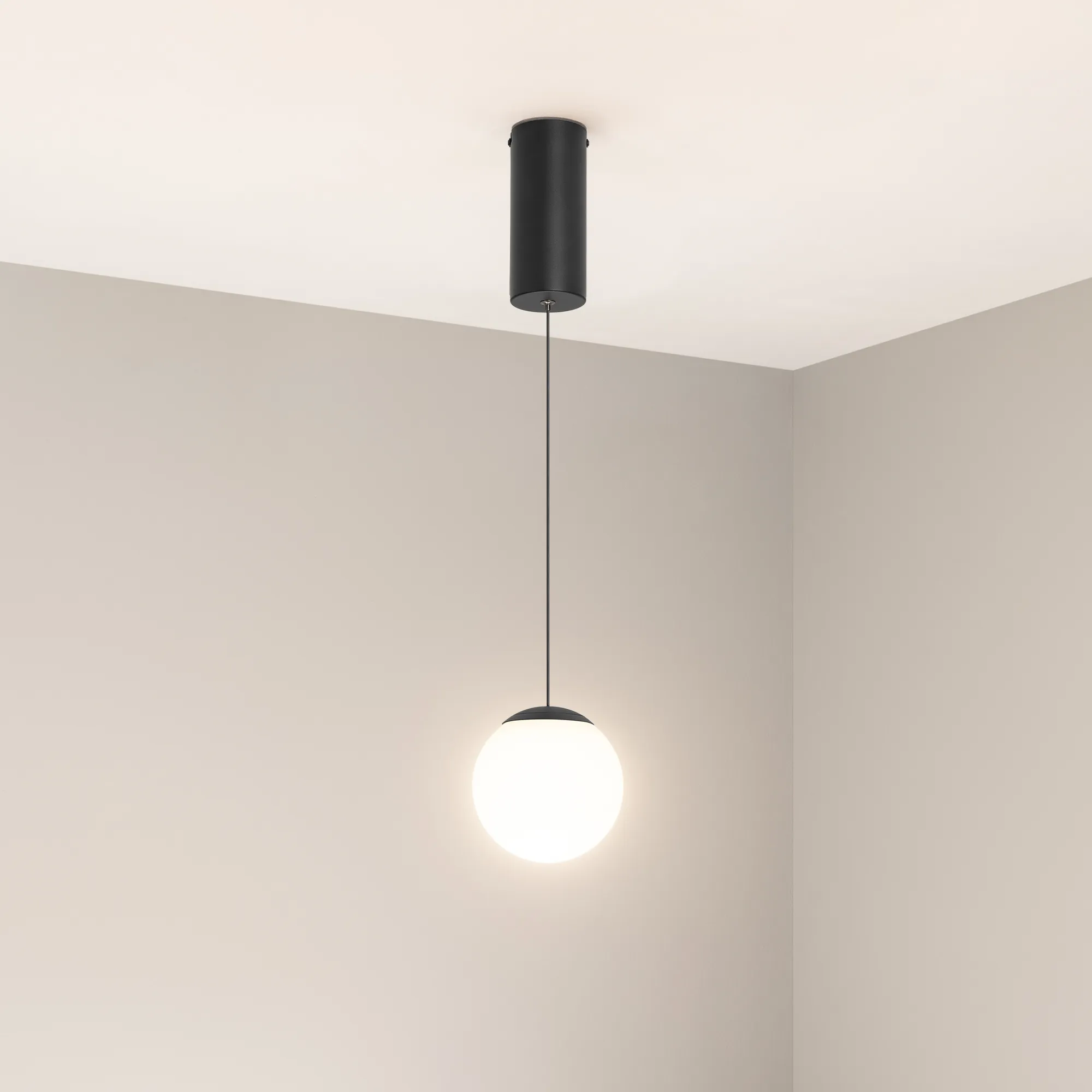 Подвесной светильник. Мощность 10 Вт, св. поток 720 лм, 70 лм/Вт, дневной 4000 K, CRI>90, угол 250°, напряжение питания 230 В. Черный круглый корпус из алюминия и стали, рассеиватель стекло, степень защиты IP20. Размер: диаметр 130 мм, размер чаши: диаметр 70 мм, высота 160 мм. Монтаж подвесной, длина подвеса 1350 мм. Драйвер 6-14 В, 600 мА, пульсация <1%.