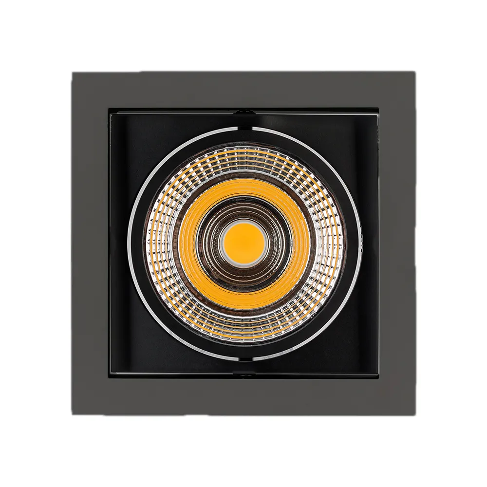 Встраиваемый карданный светильник. Угол 30° / 25Вт / БЕЛЫЙ 6000K / 2200лм, CRI>90. Корпус черный. Питание AC220-240V, 25Вт, 700mA 30-42V, драйвер в комплекте. Размеры LxWxH: 152х152x95мм, отверстие для установки 140x140мм.