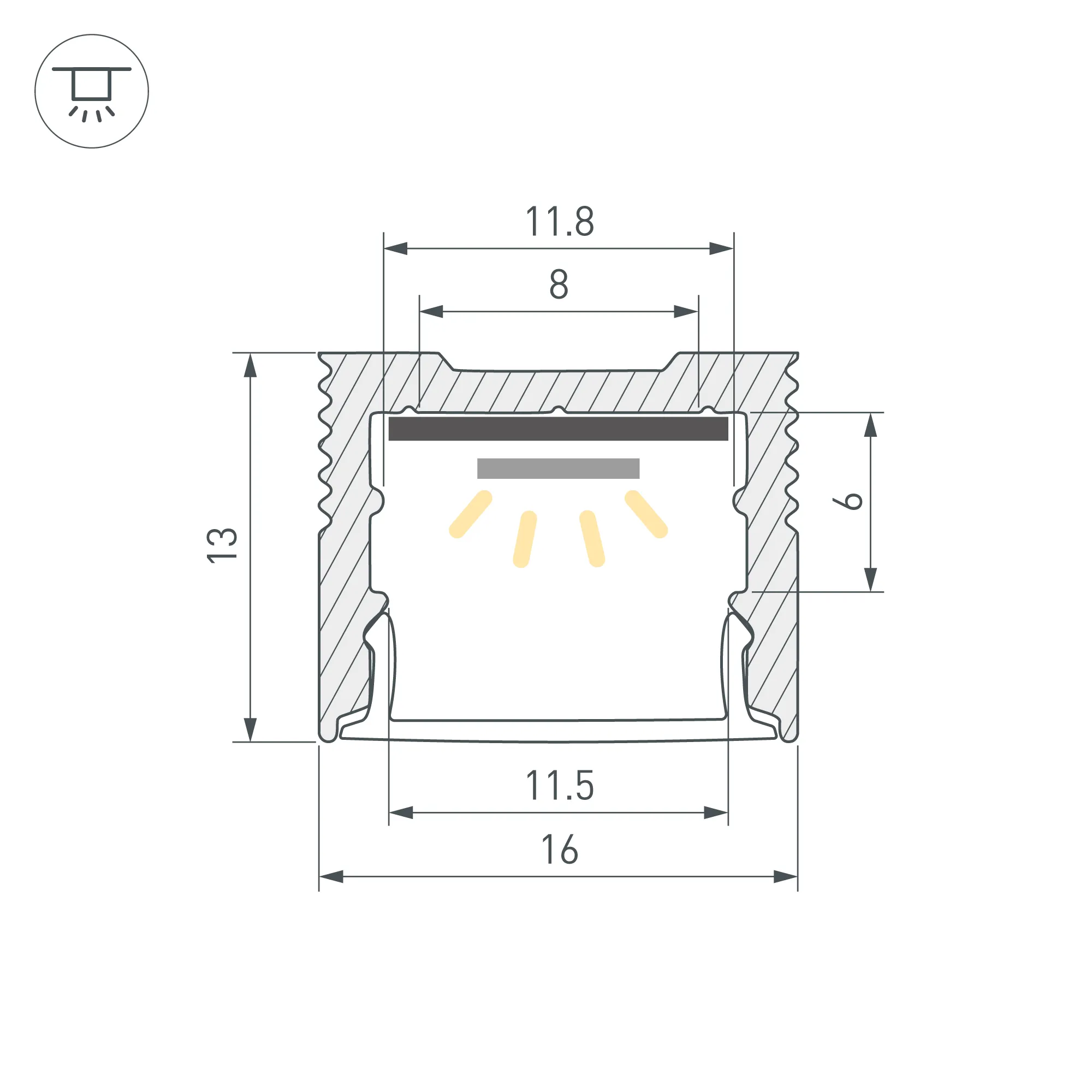 Алюминиевый профиль для светодиодных лент и линеек. Цвет - белый RAL9003 (порошковая окраска). Габаритные размеры (L×W×H): 2000x16x13 мм. Ширина площадки для ленты 11,8 мм. Экраны, заглушки и другие аксессуары приобретаются отдельно. Цена за 1 метр.