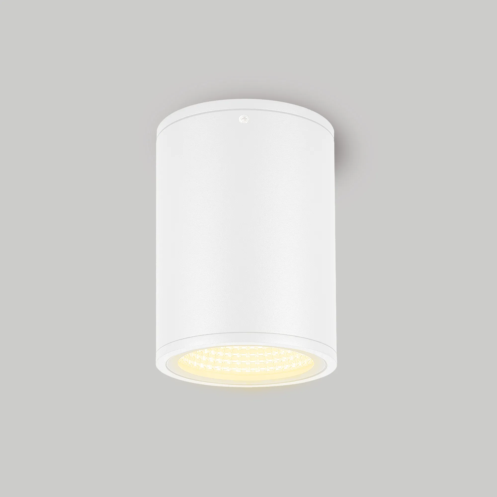 Накладной светильник 12Вт, белый алюминиевый корпус, оптическое закаленное стекло. Цвет ТЕПЛЫЙ БЕЛЫЙ 3000K, св.поток 790лм, CRI(Ra)>80, угол 44°. Размер Ф90x137мм. IP54. Питание AC230V, 12Вт, встроенный драйвер 30-42 В, 300 мА.