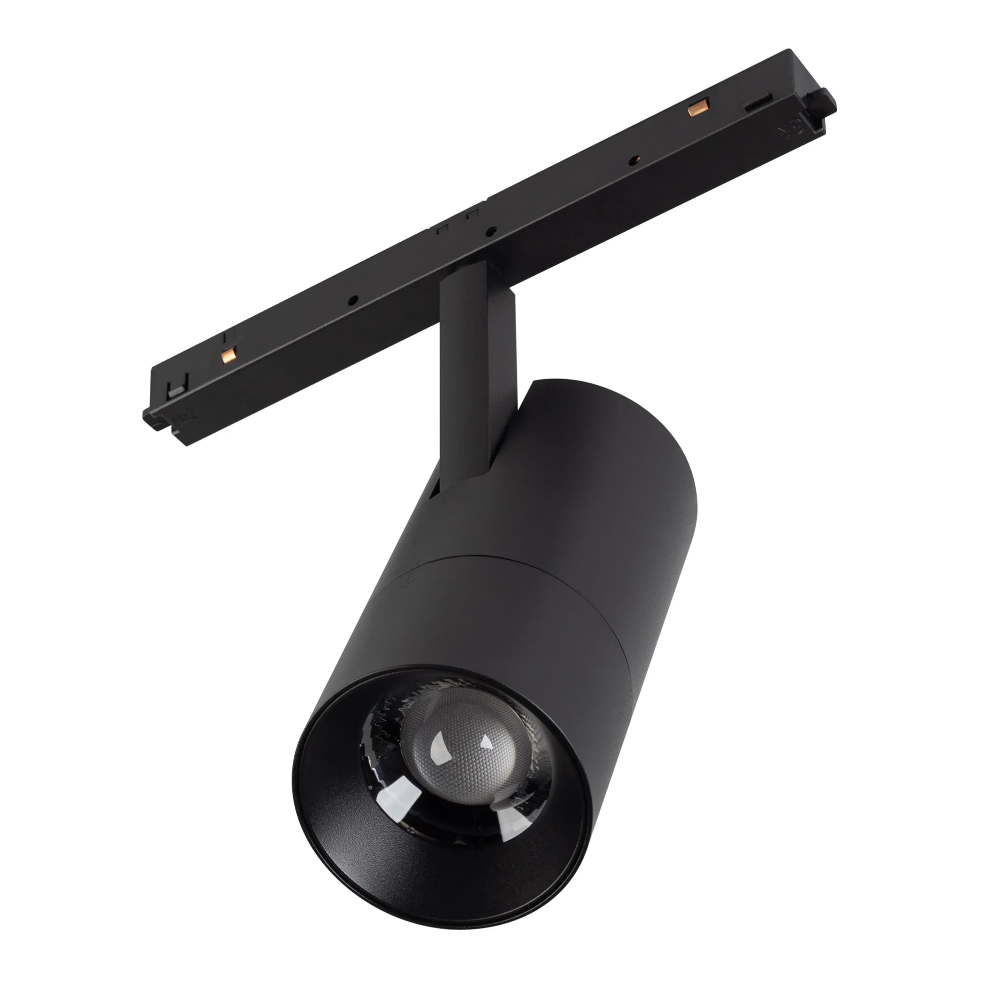 Светильник для магнитных треков MAG-ORIENT шириной 26 мм. Мощность 15 Вт, св. поток 1100 лм, 73 лм/Вт, дневной 4000 K, CRI>94, угол 34-60°, напряжение питания 48 В. Черный фигурный корпус из металл, экран поликарбонат, степень защиты IP20. Размеры LxWxH 204x66x211 мм.