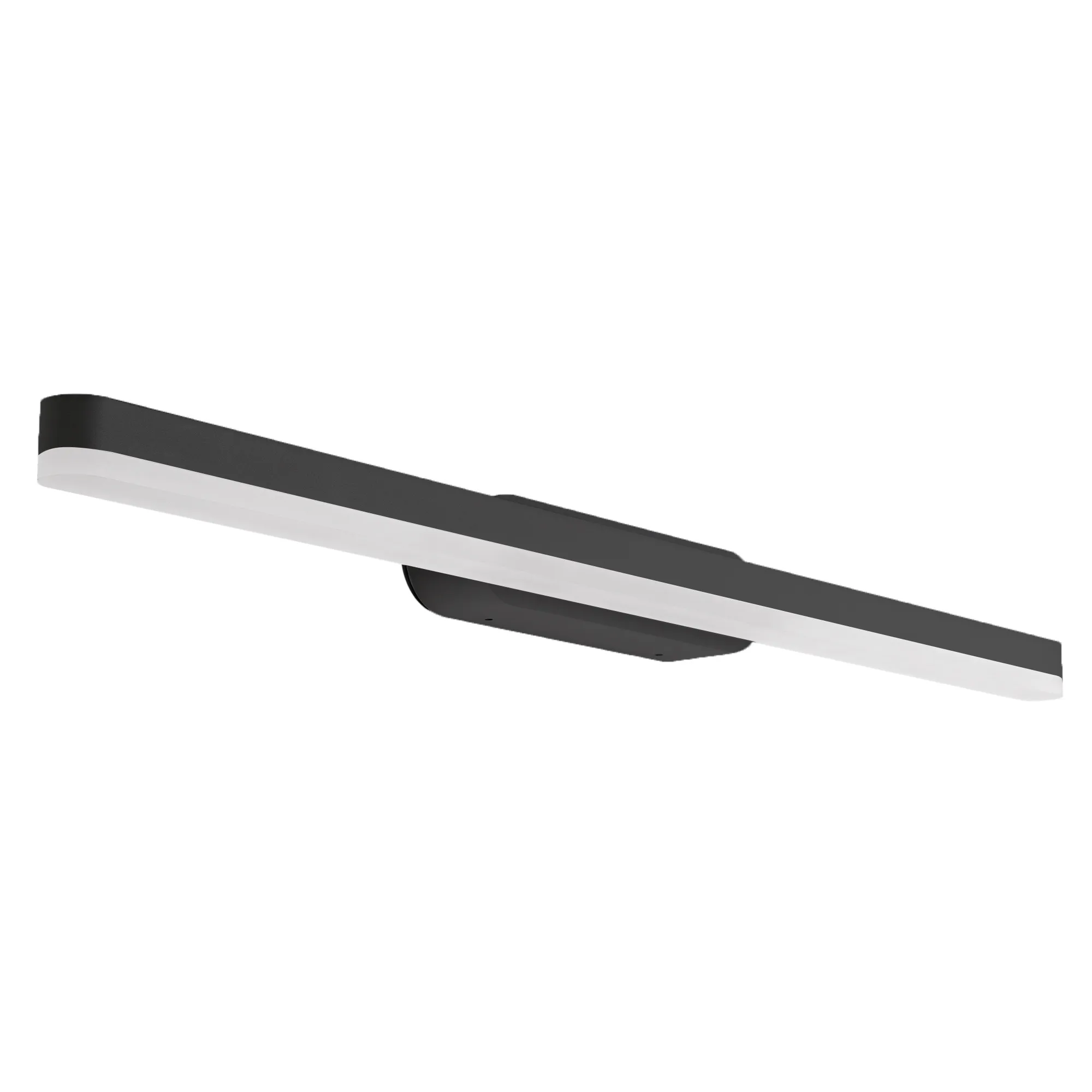 Декоративный настенный светильник. Мощность13 Вт, св. поток 630 лм, 52 лм/Вт, дневной 4000 K, CRI>90, угол 120°, напряжение питания 230 В. Черный фигурный корпус из алюминия, экран из матового поликарбоната, степень защиты IP54. Размер: длина 600 мм, ширина 55 мм, высота 65 мм. Размер светоизлучающего модуля: длина 600 мм, ширина 25 мм, высота 25 мм Монтаж накладной. Пульсация <0,5.