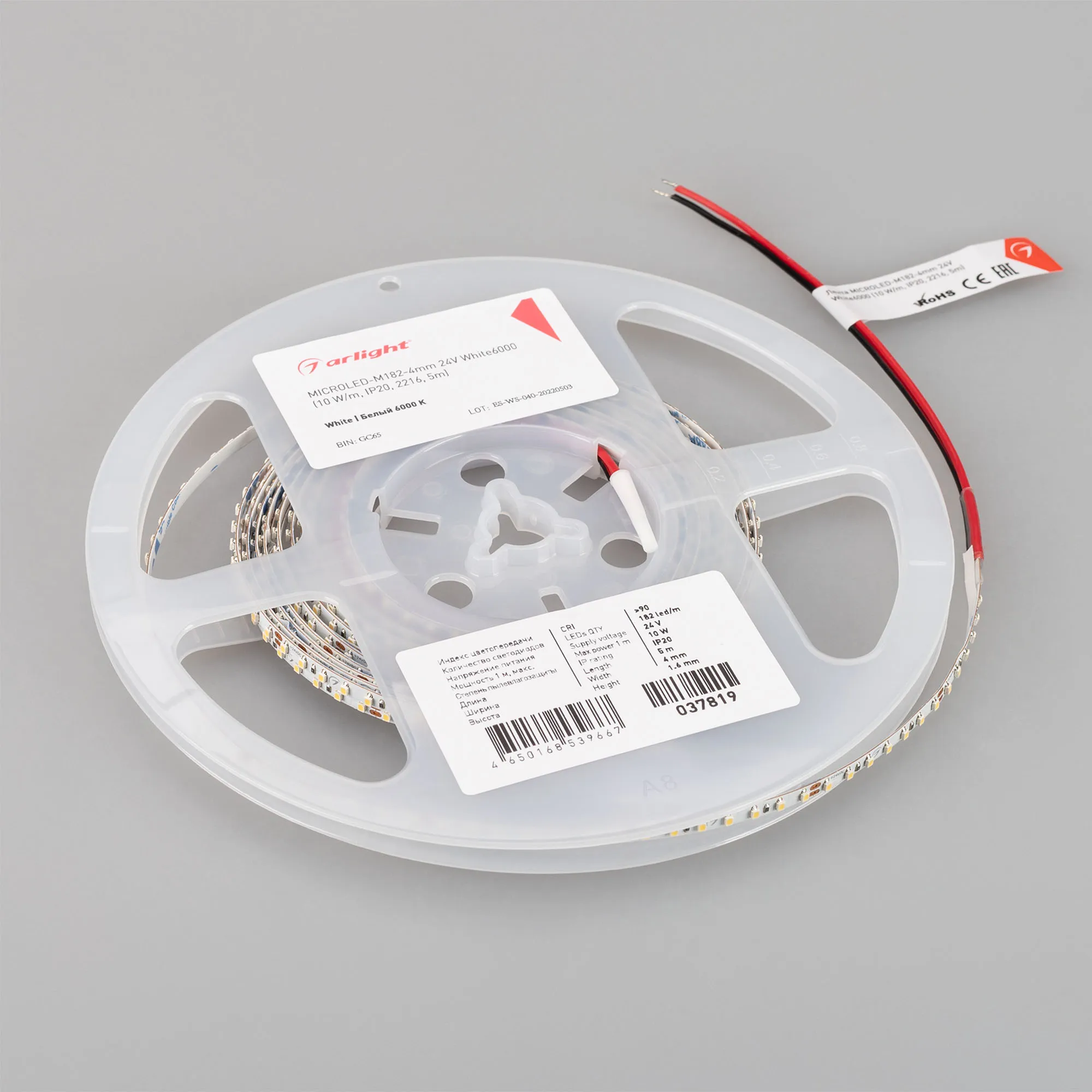Лента светодиодная MICROLED-M182-4mm 24V White6000 (10 W/m, IP20, 2216, 5m) (Arlight, узкая)
