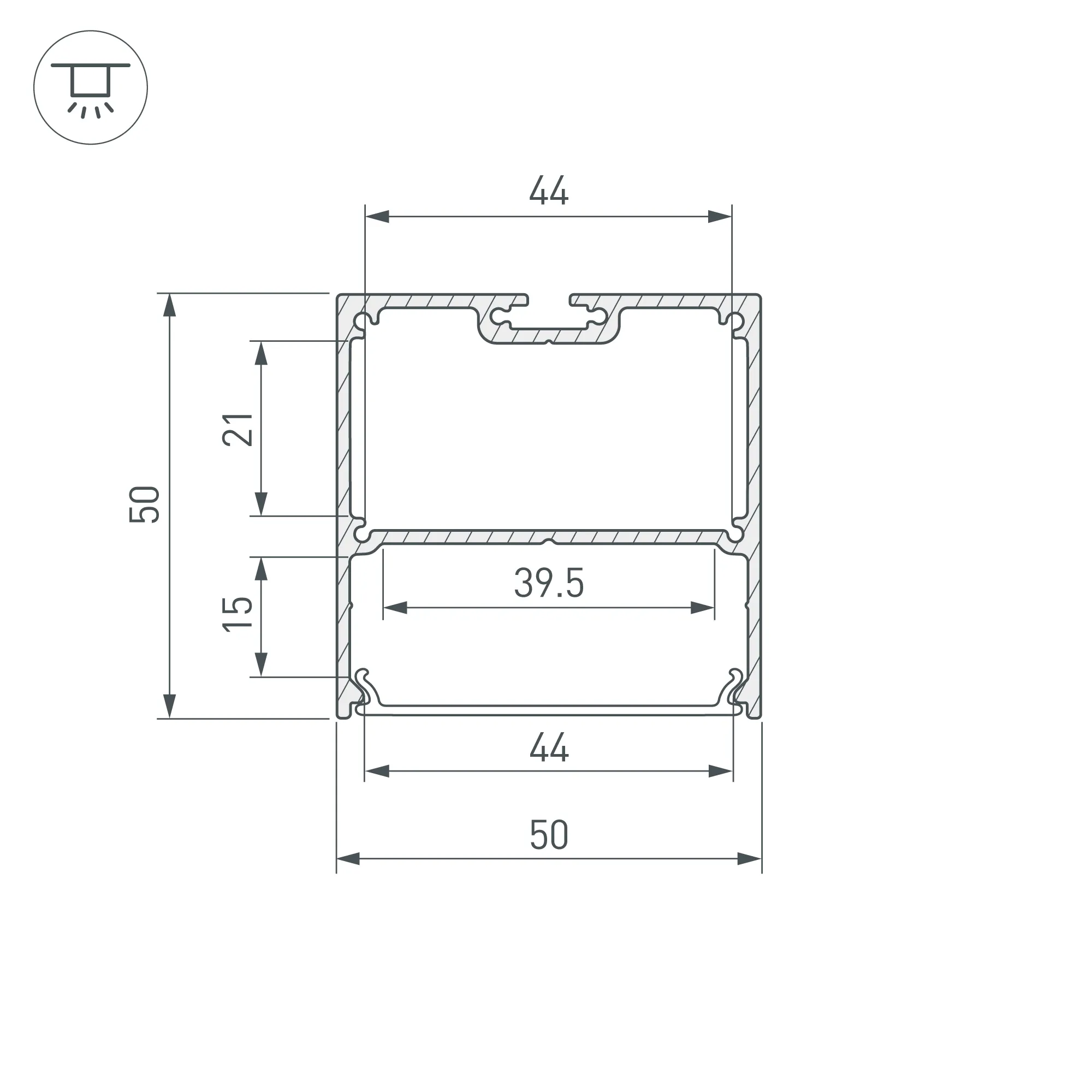 Алюминиевый анодированный профиль для светодиодных лент и линеек. Цвет - оливковый серый. Габаритные размеры (L×W×H): 2000x50x50 мм. Ширина площадки для ленты 39,5 мм. Отсек для БП 44х21 мм. Экраны, заглушки и другие аксессуары приобретаются отдельно. Цена за 1 метр.